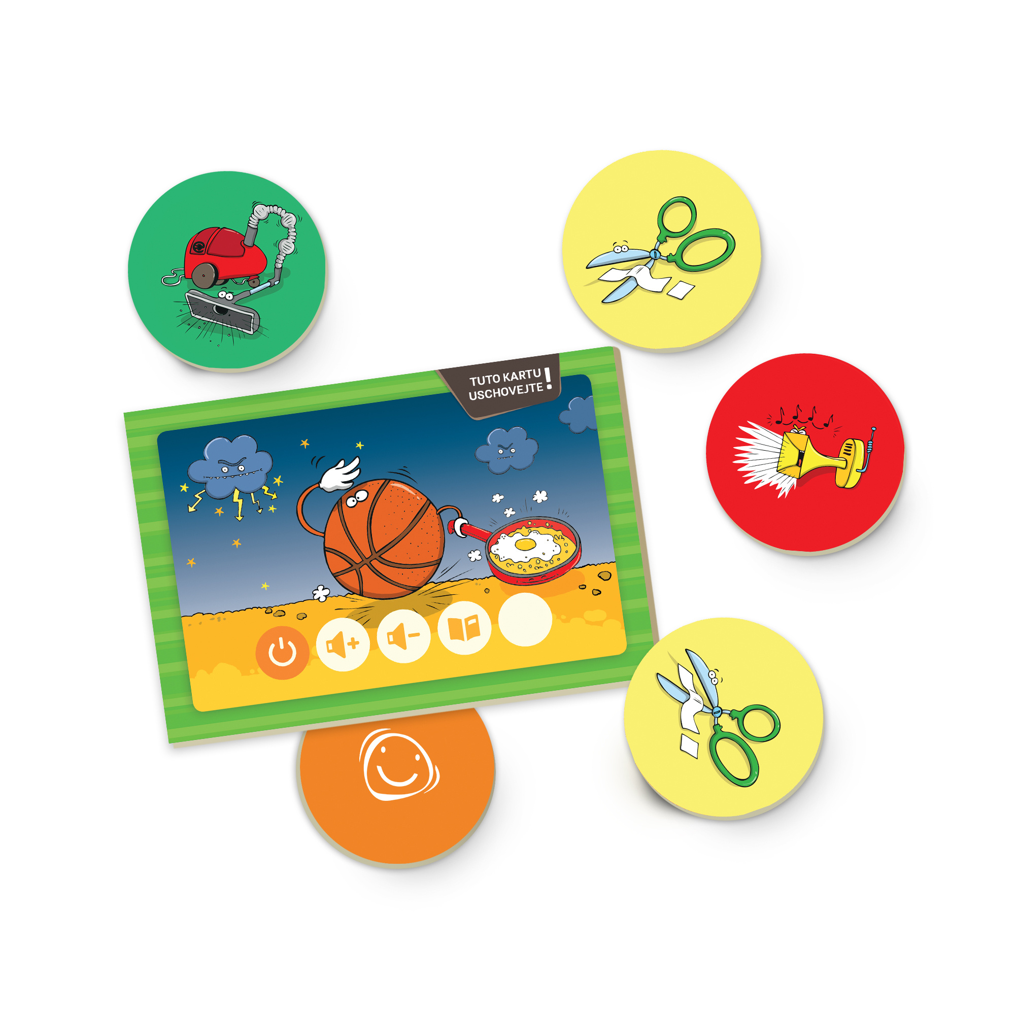 Pexeso je všeobecně známá a oblíbená hra. Díky zvukům však získává zcela nový rozměr a kombinuje vizuální a poslechovou paměť. Nabízí také více herních variant. Děti si mohou ověřit, zda dokáží rozeznat zvuky, které nás obklopují.