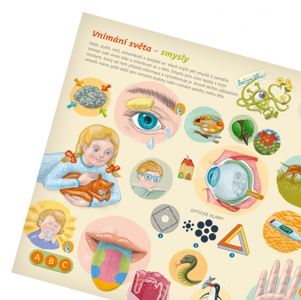 V knize Lidské tělo najdete také básničky, zábavné kvízy a speciální ikony, které děti vybízí, aby si získanou informaci zkusili doslava na vlastní kůži.