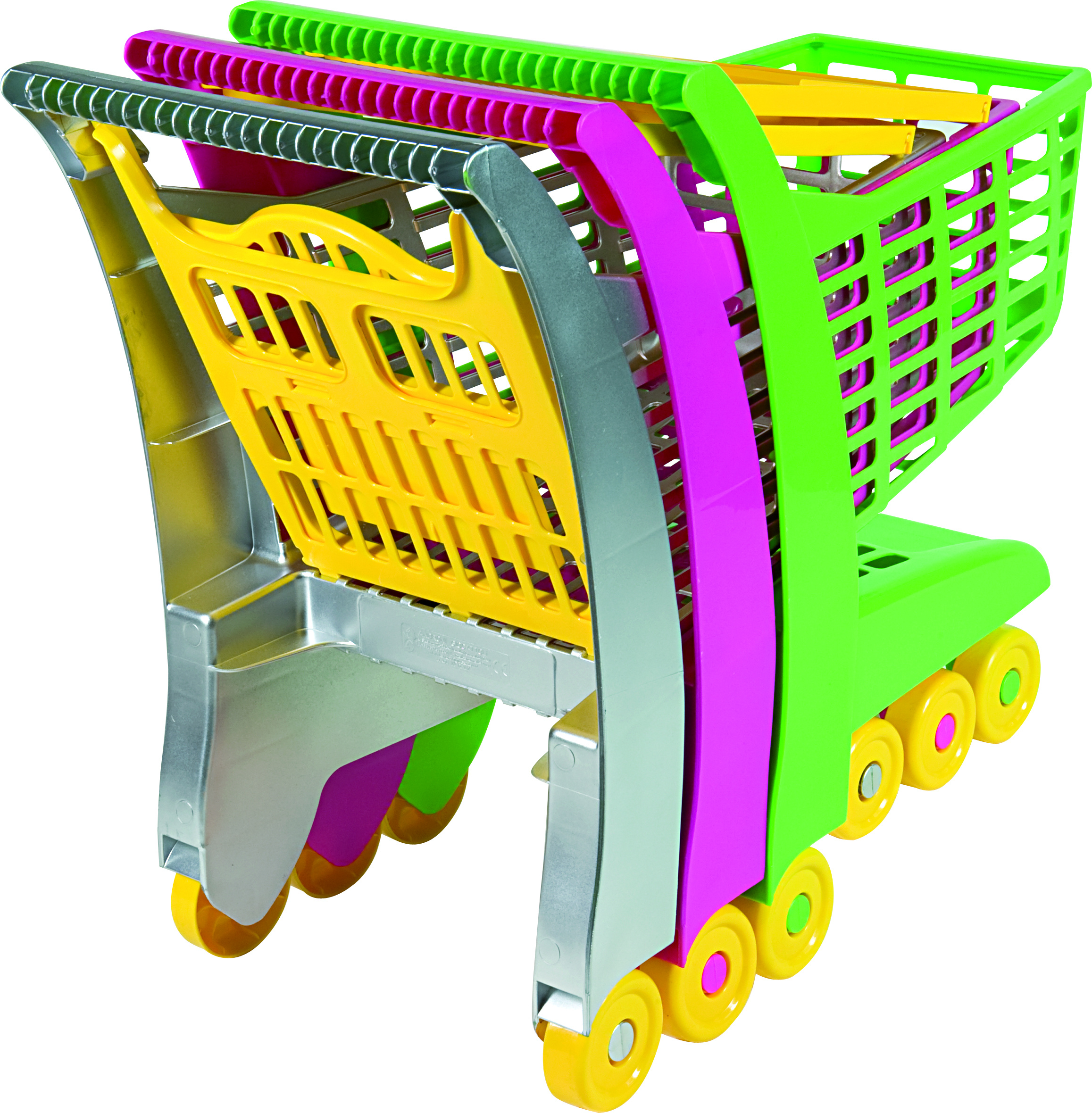 Velmi oblíbený nákupní vozík designově připomínající vozíky z dnešních supermarketů. Vozík je opatřen sedátkem, do kterého lze pohodlně usadit panenku. Vyrobený z kvalitních plastů v Itálii. Velikost: 41 x 27 x 47 cm, váha: 1,23 kg.