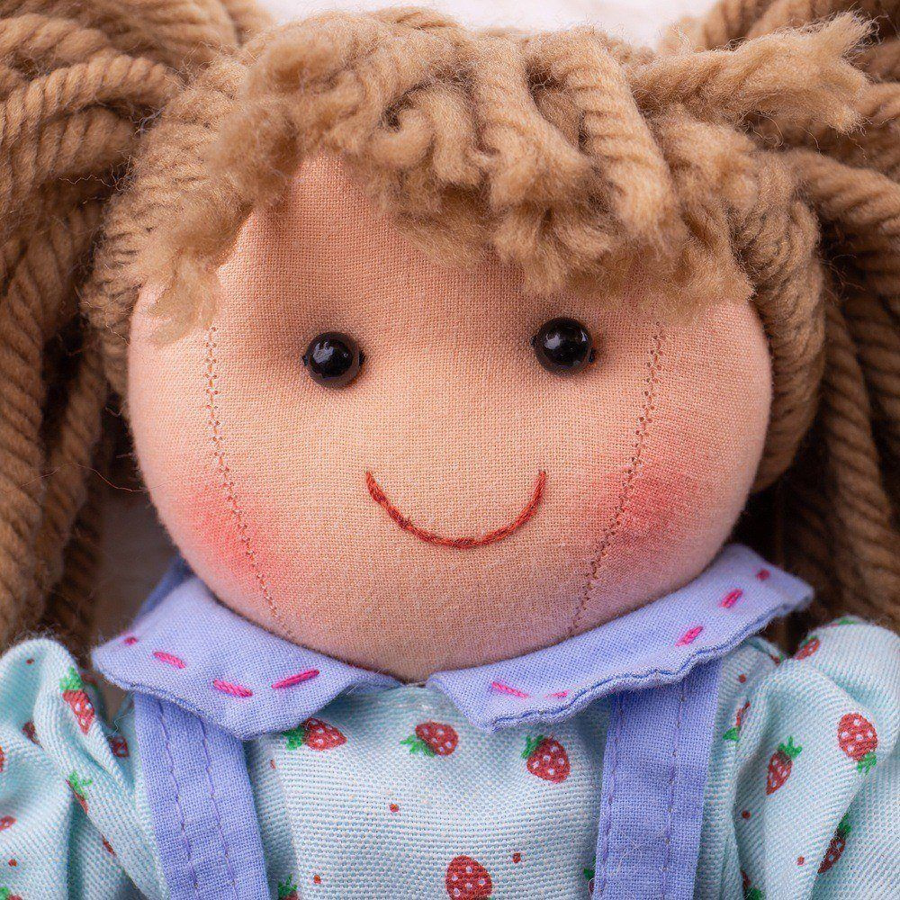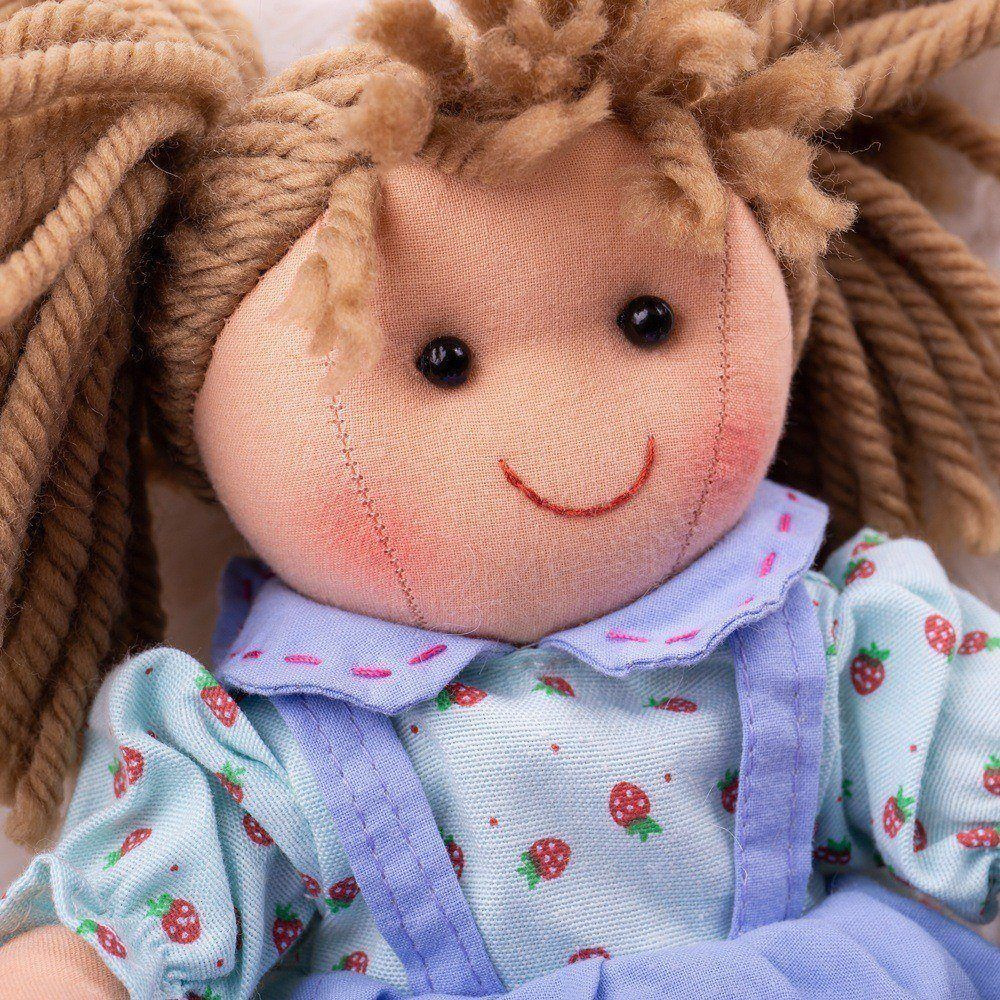 Seznamte se s Grace - veselou, barevnou, látkovou panenkou, s níž si Vaše dítě bude určitě rádo hrát. Panenka je oblečena do kvalitního oblečení v hezkém, bleděmodrém provedení se vzorem červených jahůdek. Měkké látkové panenky jsou skvělým způsobem, jak podpořit kreativní hraní.