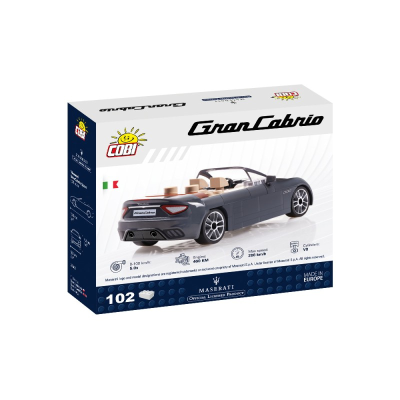 Model vyrobený ze stavebních kostek Cobi v měřítku 1:35 vyráběný pod licencí slavné italské automobilové značky – Maserati, je ideální produkt pro děti i dospělé motoristické fanoušky. Díky speciálně navrženým dílkům, které věrně odrážejí tvar těla vozidla, jsou stavební modely vytvořené společností COBI jako malá umělecká díla. Díky solidní konstrukci a pohyblivým kolečkům na speciálních gumových pneumatikách budou auta dokonale jezdit po jakémkoliv povrchu.