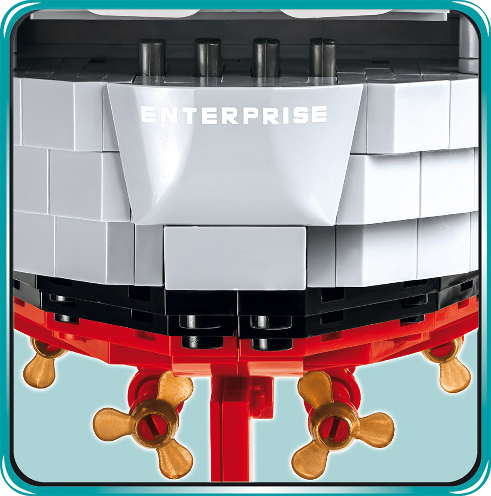 Postavte si model legendární americké letadlové lodi USS Enterprise (CV-6) z období 2. světové války! Sestavené plavidlo měří na délku 83 cm, na šířku 13 cm a na výšku 17,5 cm (20 cm i s podstavcem). Model má mnoho pohyblivých částí, mimo jiné otočné dělostřelecké věže, kormidlo či lodní šrouby. Stavebnice obsahuje 2510 kostek včetně 6 mikromodelů letadel.