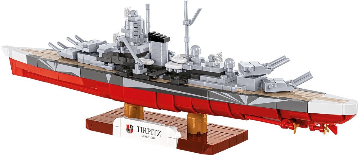Postavte si detailní model legendárního německého bitevního plavidla Tirpitz z období druhé světové války v měřítku 1:700. Stavebnice obsahuje 593 kvalitních kostek a po sestavení měří model 35,5 cm na délku, 5,5 cm na šířku a 11 cm na výšku (výška bez podstavce 8,5 cm). Model věrně zachycuje charakteristickou siluetu lodi, její hlavní i sekundární výzbroj, nástavby a historické zbarvení. Nechybí pohyblivé lodní šrouby a otočné dělové věže a součástí balení je také elegantní podstavec se sběratelskou tabulkou, díky kterému se model skvěle hodí k vystavení v každé sbírce.