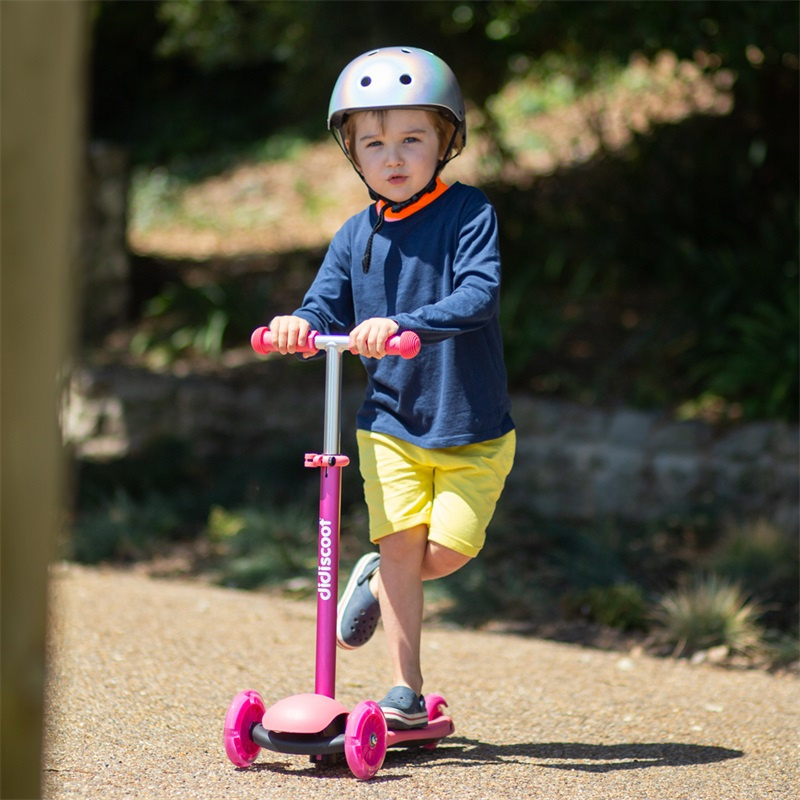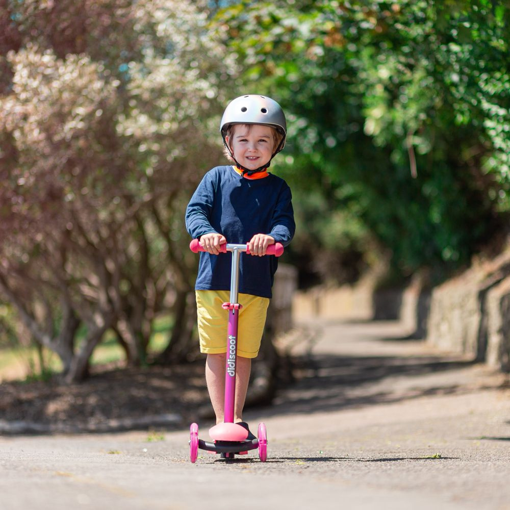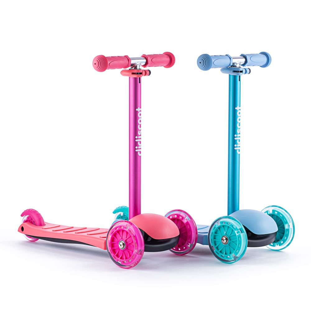 Užijte si jízdu na moderní designové koloběžce Didiscoot. Řídí se náklonem a jízda může dopomoci zejména k utužení fyzické kondice a koordinace pohybu. Koloběžka je skládací, což usnadňuje přenášení a šetří prostor. Řídítka můžete nastavit do několika výškových úrovní, hračka je tak přístupná mnoha věkovým kategoriím a může s dětmi vyrůstat. Zadní kolečko je vybaveno brzdou. Díky konstrukci z pevných nezávadných plastů a lehkých slitin je koloběžka lehká. Řídítka lze vysunout do tří výšek nad standardní polohu 50 cm: 58 cm, 67 cm, 76 cm. Vyhovuje evropským bezpečnostním směrnicím.