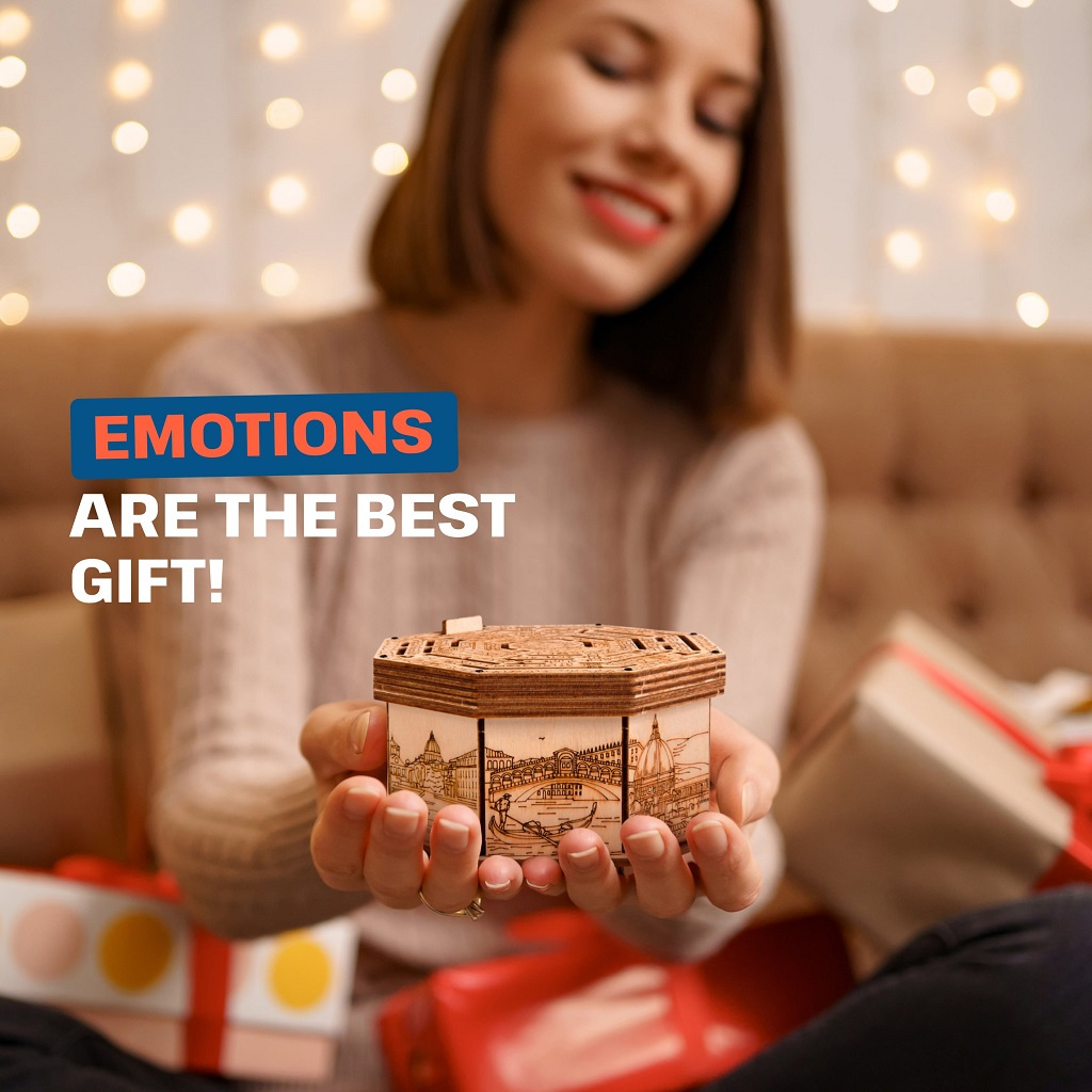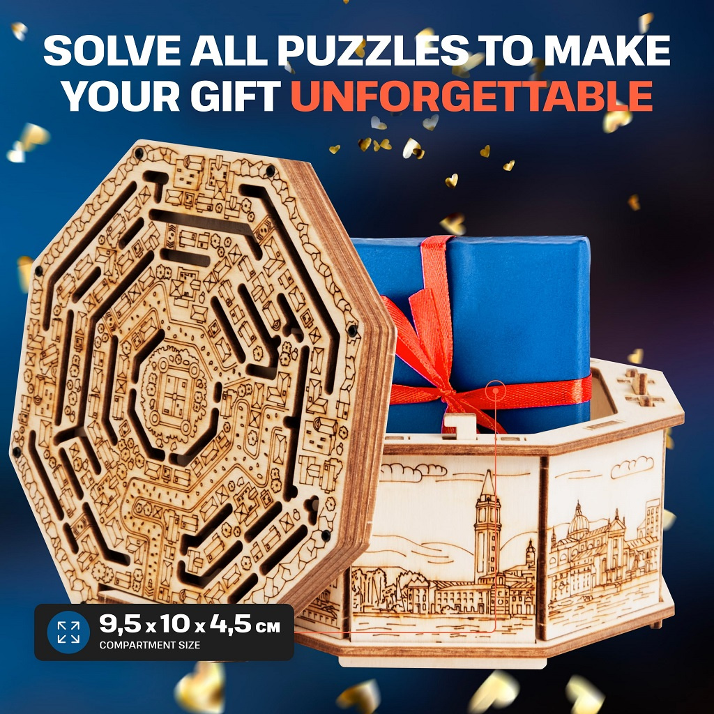 Odhalte mechanismus magického bludiště, abyste získali tajnou přihrádku. Věnujte dárek s překvapením, anebo skryjte svá tajemství díky tomuto vysoce kvalitnímu boxu s jedinečným designem. Secret Maze Box je dokonalý pro uložení věcí, které jsou vašemu srdci drahé. Elegantní tvar jej proměňuje v umělecké dílo, které bude ozdobou každého interiéru. Vyroben byl šetrně k životnímu prostředí, ze 100% přírodních materiálů a všechny jeho části byly přesně vyřezány nejlepší laserovou technologií. Splňuje všechny evropské bezpečnostní normy.