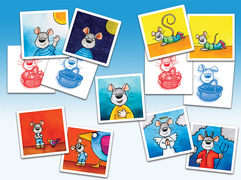 Do KLUBU PŘEDŠKOLÁKŮ patří i hra s protiklady, jejíž hlavní hrdinkou je myška. Jednou je malá, jindy velká, pak zase veselá, anebo smutná. Učí děti rozeznávat protiklady a procvičuje tak jejich postřeh, paměť i pozorovací schopnosti a zároveň jim rozšiřuje slovní zásobu. Hra pro 1 až 4 hráče od 3 do 7 let obsahuje 54 kartiček a umožňuje dvě herní varianty.