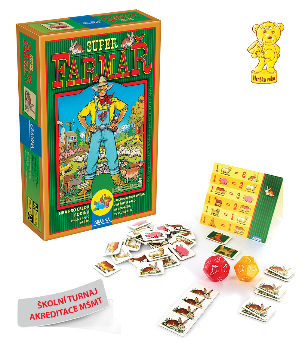 Superfarmář je rodinná desková hra pro 2 až 6 hráčů již od 7 let. Hráči za pomoci dvanáctistěnných kostek a směny získávají do svého stáda domácí zvířata – králíky, ovce, prasata, krávy a koně. Superfarmářem se stává ten, kdo jako první shromáždí stádo domácích zvířat, v němž bude alespoň jedno zvíře z každého druhu. Všechny hráčovy plány však mohou být zmařeny, nebude-li dost ostražitý! Kolem stáda se totiž potulují liška a vlk a hráčova zvířata se mohou stát jejich snadnou kořistí. Pravidla hry, která se opírají o zásady matematiky a logiky, nutí hráče počítat, předvídat, plánovat a kalkulovat s riziky. Tato jedinečná hra tak učí děti i rodiče strategickému myšlení. Oceněno 3. místem v kategorii Hra v soutěži HRAČKA ROKU 2009.
