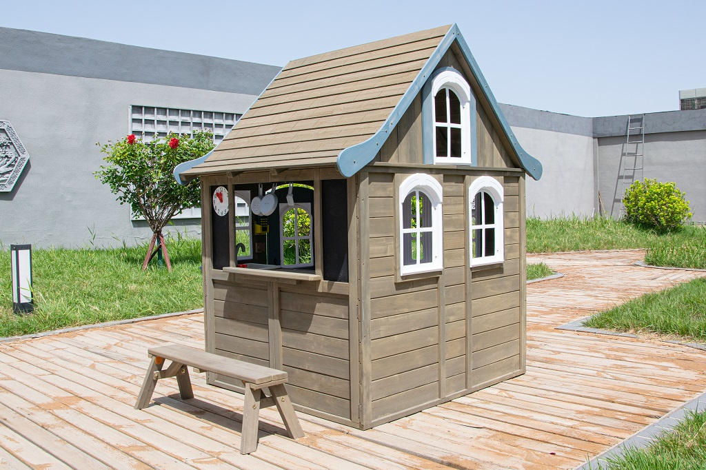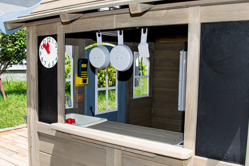 Sníte o poklidném místě, plném relaxu, zábavy a dobrého jídla? Pak jste na správném místě! V tomto rozkošném domečku se budete cítit jako v pohádce. Sněhově bílá okýnka zajišťují nepřetržitý přehled o svém okolí. Detaily jako hodiny, křídové tabulky a truhlíky na květiny přijdou jistě vhod. Útulná kuchyňka v podobě dřezu, vařiče a servírovacího pultu dává možnost malým gurmánům ukázat své kulinářské dovednosti. Díky lavičce se o své pochoutky můžete podělit se svými přáteli. Na co čekáte? Zazvoňte na funkční zvonek a zabydlete se! Ošetřeno základním nátěrem. Pro větší odolnost proti povětrnostním vlivům doporučujeme další ošetření dřevěných dílů.