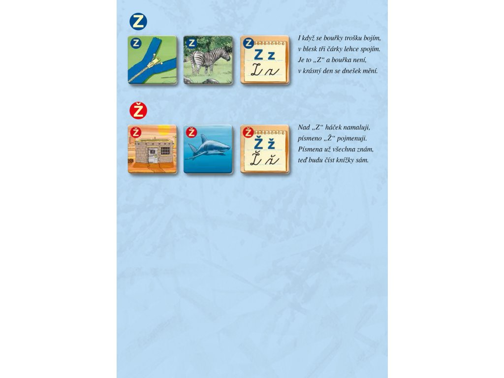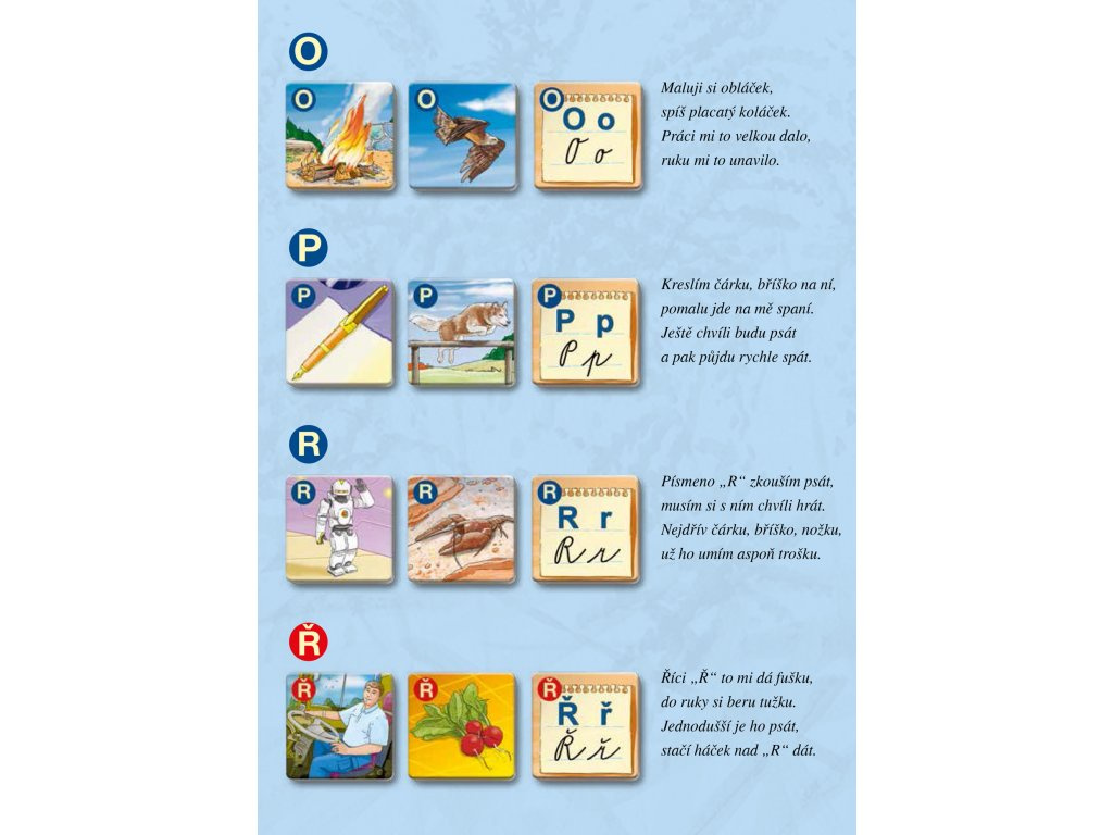 - 30 písmenek abecedy (90 kartiček)