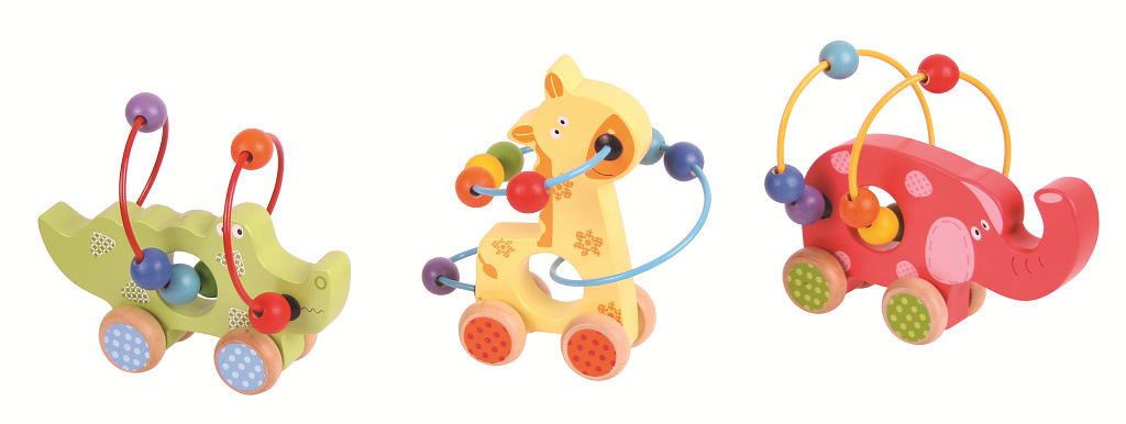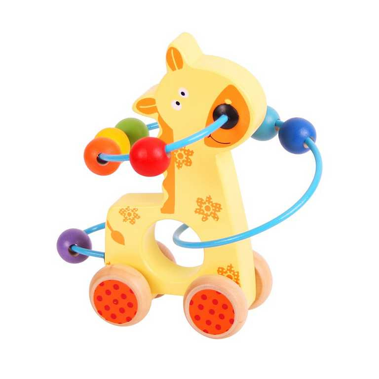 Tato pestrobarevná dřevěná žirafa na kolečkách s kovovým korálkovým labyrintem je velmi oblíbená u našich nejmenších. Podporuje motoriku dětí a rozvíjí obratnost a koordinaci.