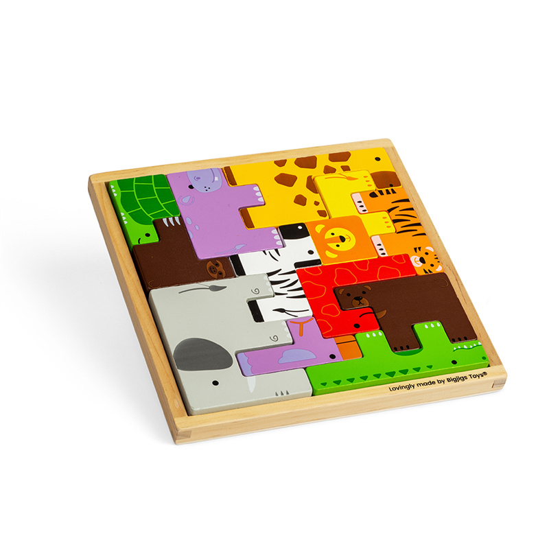Zábavné puzzle pro děti s roztomilými ilustracemi exotických zvířátek. Hra napomáhá koordinaci ruka-oko, rozvíjí logické myšlení, znalosti a slovní zásobu dětí a také schopnosti rozpoznávat barvy a tvary. Neslouží pouze jako puzzle, ale díky vhodně zvolenému tvaru jednotlivých zvířátek si mohou děti postavit vlastní Safari a hrát si s nimi jako s plnohodnotnými hračkami. Toto smyslové puzzle je skvělým dárkem pro každé dítě. Vyrobeno z vysoce kvalitních, zodpovědně získaných materiálů a odpovídá současným evropským bezpečnostním normám.