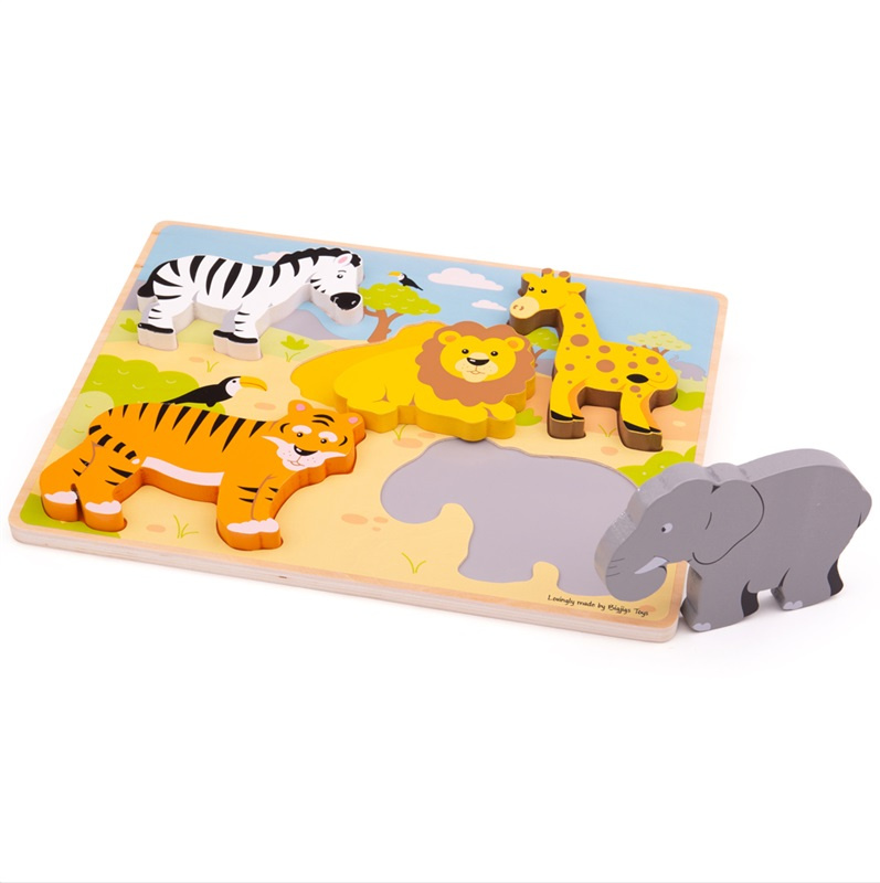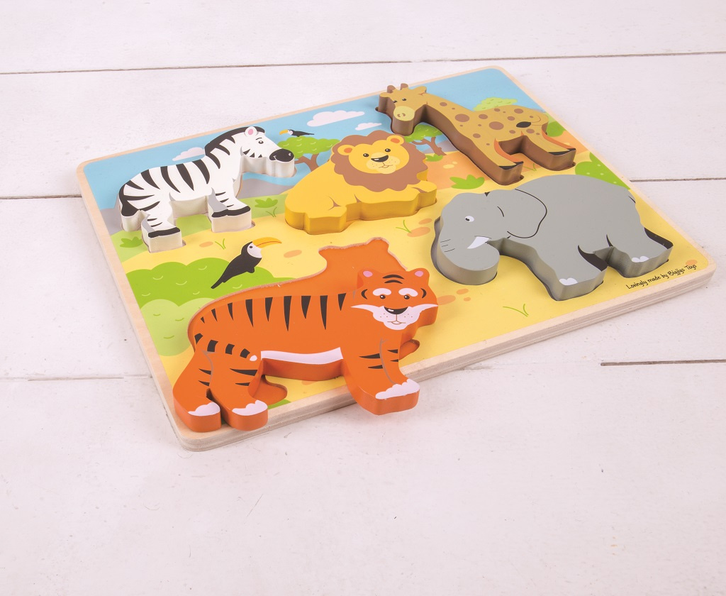 Přiřaďte každý pestrobarevný dřevěný dílek ke správně tvarovanému otvoru na základní desce. Dřevěné puzzle Bigjigs Toys pomáhají rozvíjet slovní zásobu a pomáhají dětem vybavit si slova, když rozpoznávají tvary, barvy a obrázky. Každý masivní dřevěný dílek puzzle má ideální velikost, aby ho malé ručičky snáze zvedly, uchopily, prozkoumávaly a vyměňovaly. Pomáhá rozvíjet zručnost, smyslové dovednosti a koncentraci. Dřevěné základní desky puzzle Bigjigs Toys jsou potištěny obrázky nebo barvami, které napomáhají procesu učení a zvyšují vzdělávací hodnotu. Vyrobeno z vysoce kvalitních, zodpovědně získaných materiálů. Splňuje aktuální evropské bezpečnostní normy. Obsahuje 5 dílků puzzle.