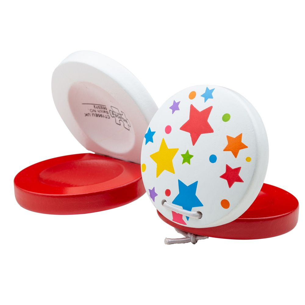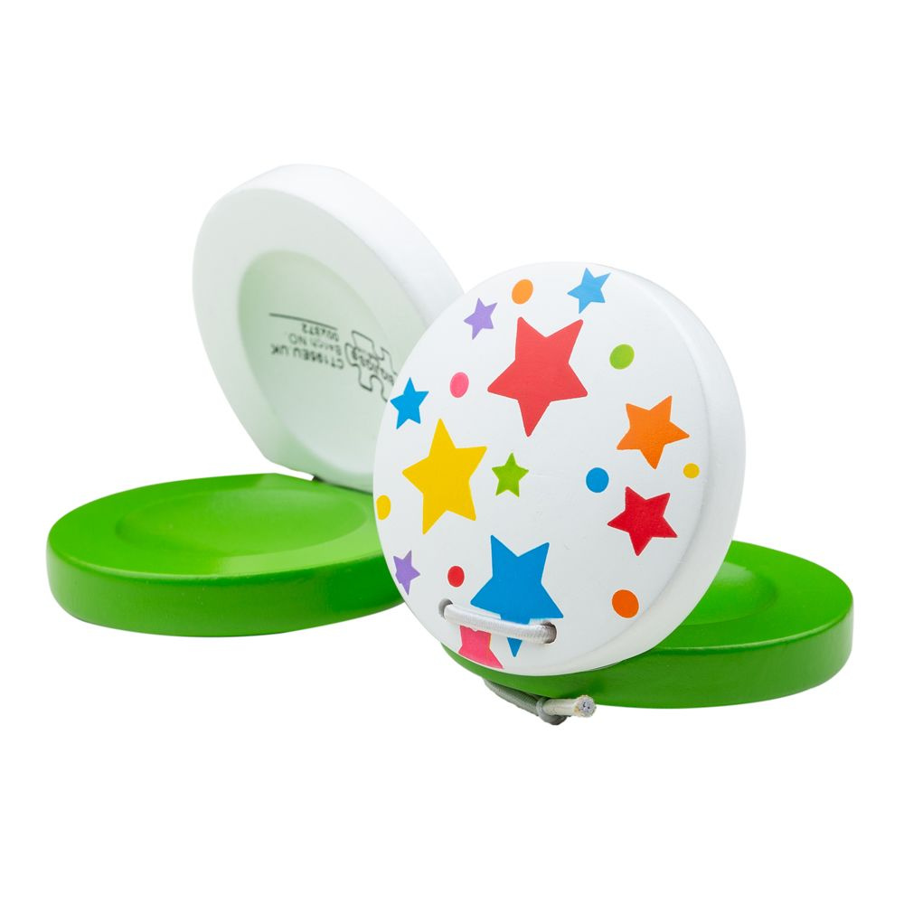 Tyto dřevěné, barevné kastaněty s hvězdičkami jsou perfektní pro úvod do světa hudby. Děti se s nimi naučí zvuku a rytmu a kastaněty je také podpoří v kreativitě. Pomáhají rozvinout zručnost a koordinaci dětí. Vyrobeno z kvalitních materiálů z odpovědných zdrojů. Odpovídá evropské bezbečnostní normě.