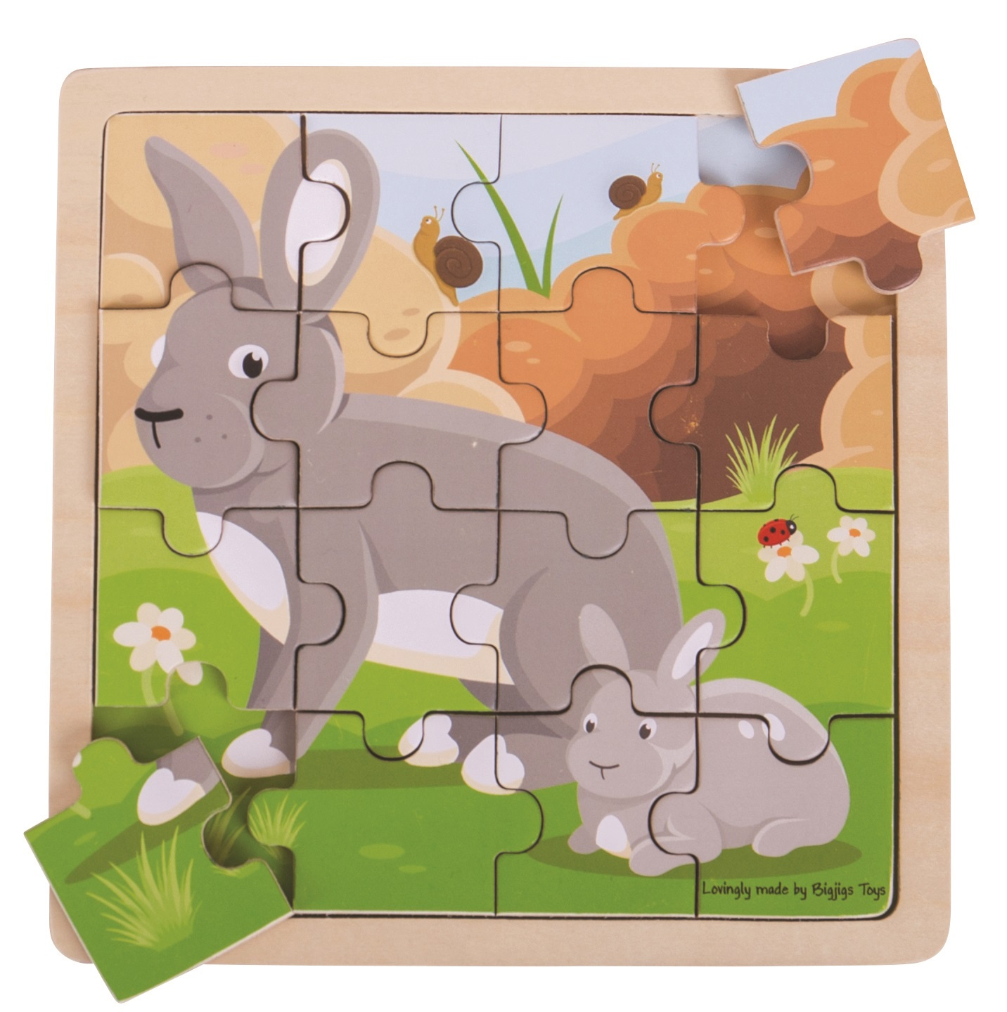 Malý králíček po boku své maminky odpočívající na jarní louce. 16 dílků robustního puzzle se vkládá na podklad se stejným motivem, Vaše dítko tak bude mít složený obrázek během chvilky. Rozměry dílků jsou uzpůsobeny snadnému uchopení dětských rukou. Puzzle pomáhá rozvíjet slovní zásobu, fantazii, motoriku a soustředění. Složené puzzle je v rámečku, nedochází k posunutí nebo zničení obrázku. Vyrobeno z vysoce kvalitních, odpovědně získaných materiálů. Odpovídá současným evropským bezpečnostním normám.