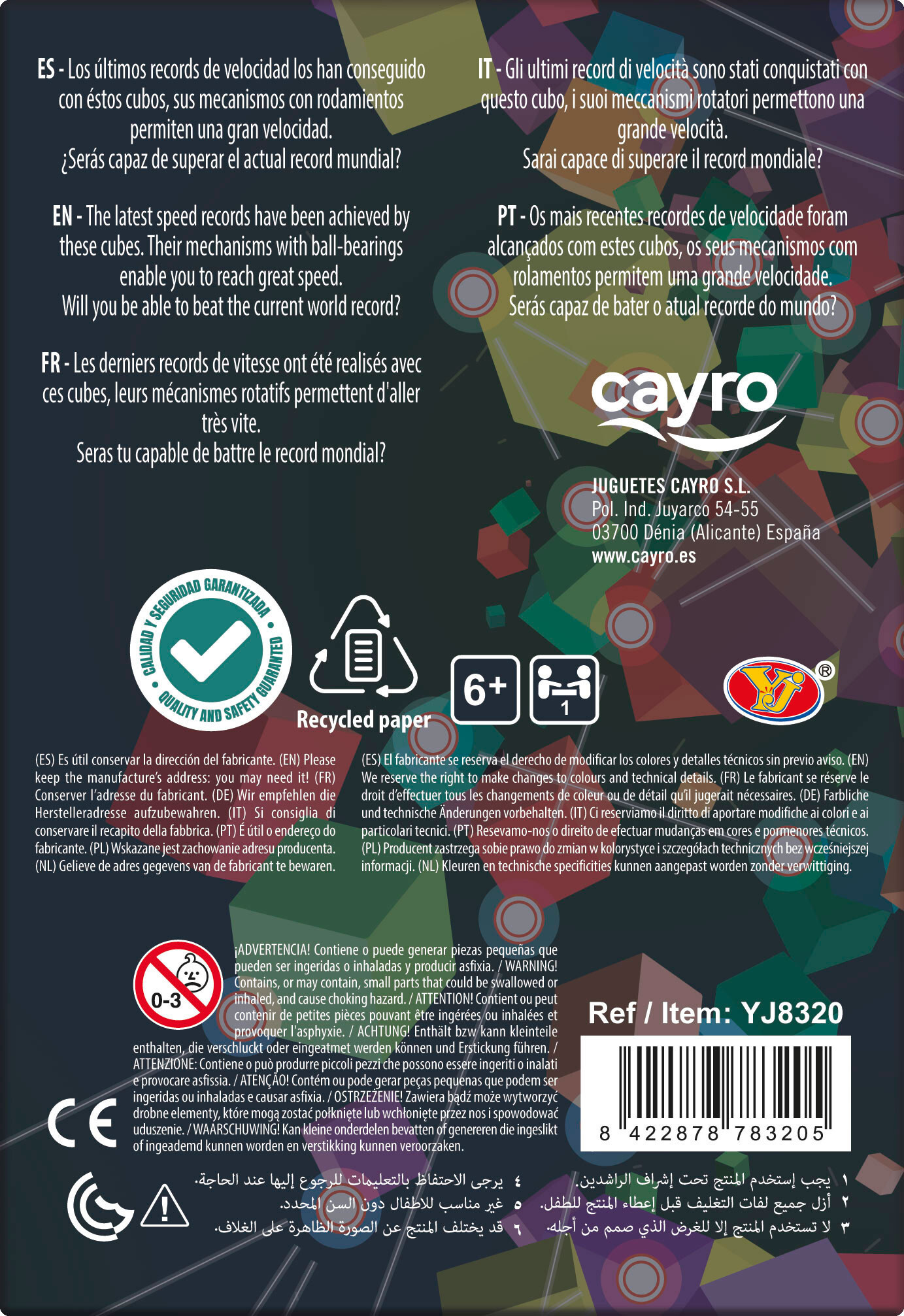 Hrací kostka obsahuje prvky různých tvarů pro větší obtížnost. Hra spočívá v tom, že je potřeba uspořádat všechny prvky tak, aby na každé stěně byla pouze jedna barva. Vnitřní mechanismus je vybaven kuličkovými ložisky, které umožňují plynulý a rychlý pohyb kostkou. Vhodné pro děti od 6 let.