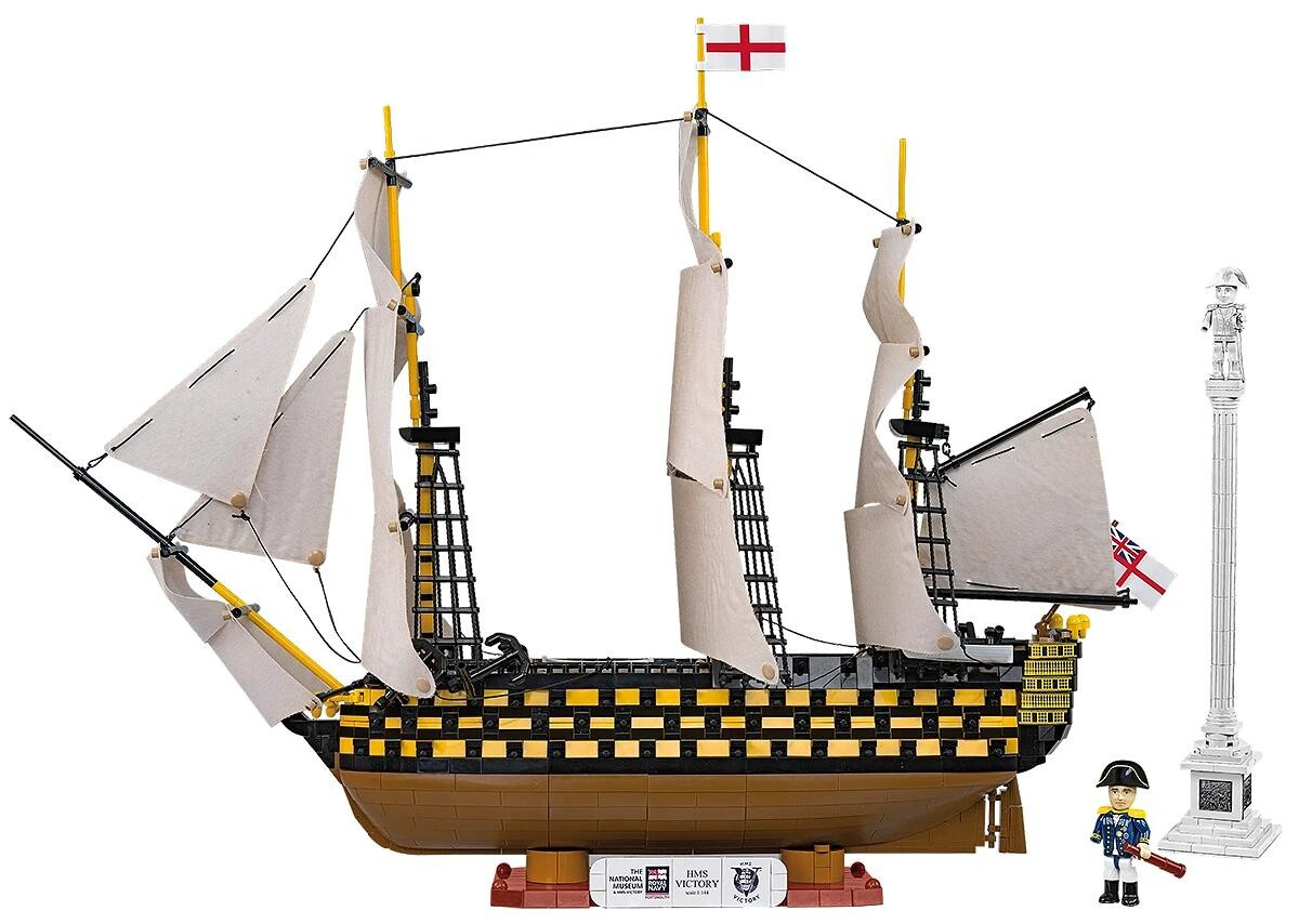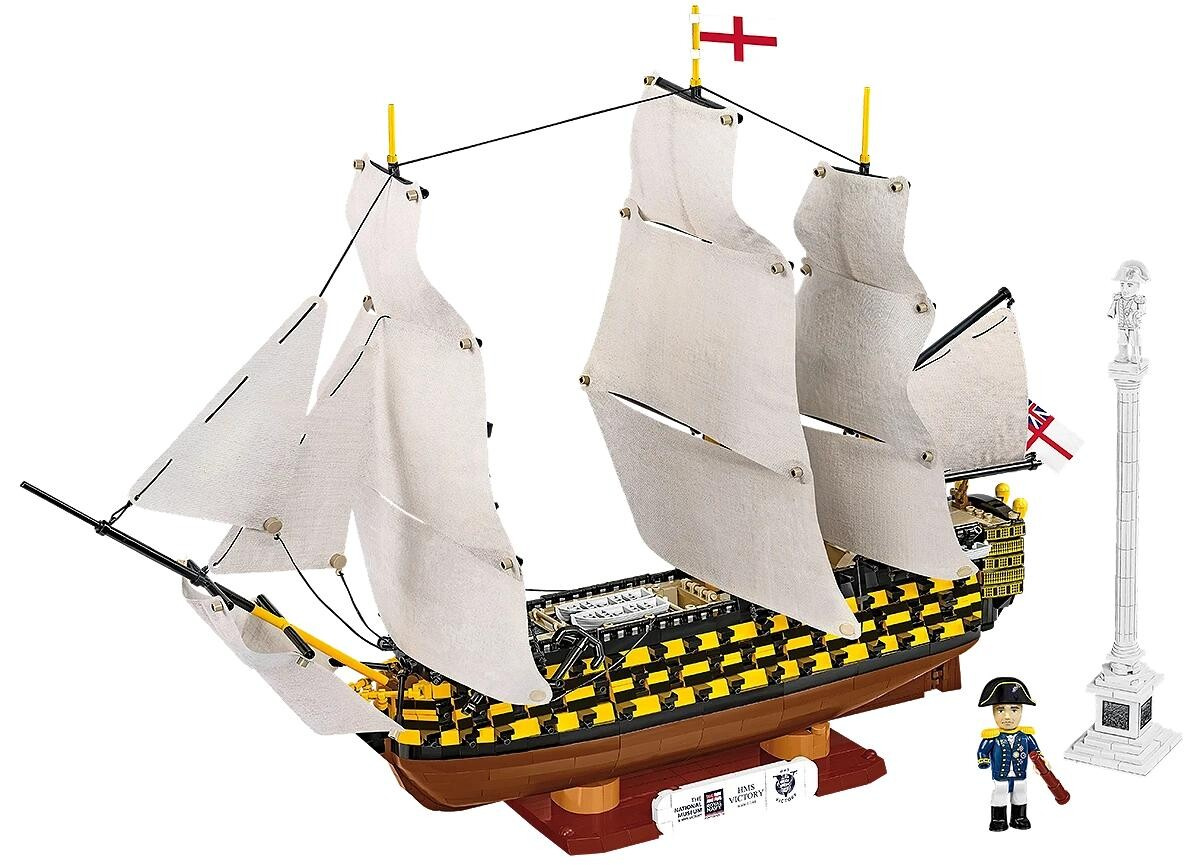 Sestavte si detailní model legendární britské dělové lodi první třídy HMS Victory, která se dodnes nachází ve službách britského námořnictva. Tato nádherná stavebnice z limitované edice obsahuje 2607 kostek a po sestavení měří 60,5 cm na délku a 43,5 cm na výšku. Model je bohatě vybaven látkovými plachtami, realistickým provazovým ráhnovím a 96 děly rozmístěnými na třech palubách. Součástí je také pevný stojan s popisem a dvě figurky – viceadmirála Horatia Nelsona a Trafalgarský sloup s jeho sochou. Každé balení je doplněno certifikátem pravosti s unikátním sériovým číslem.