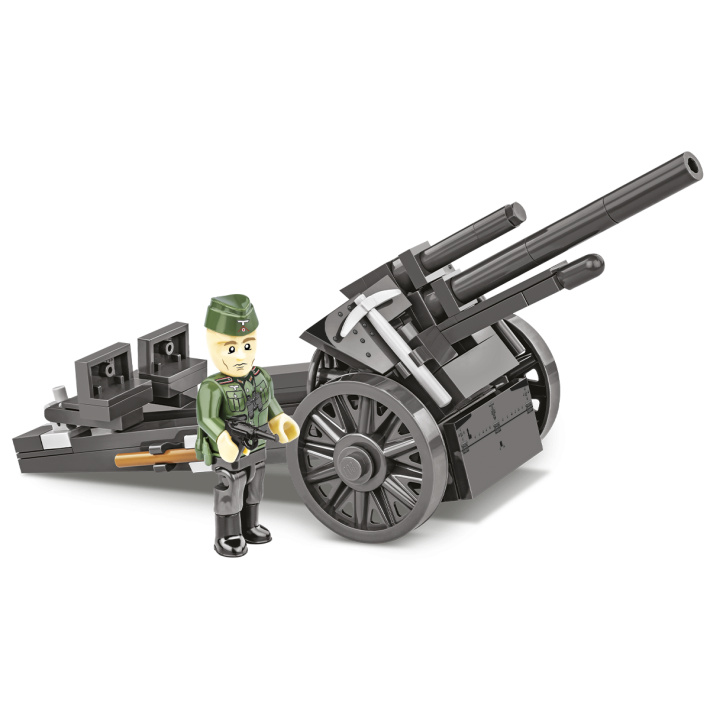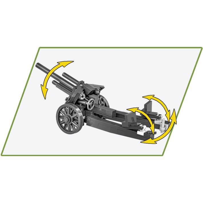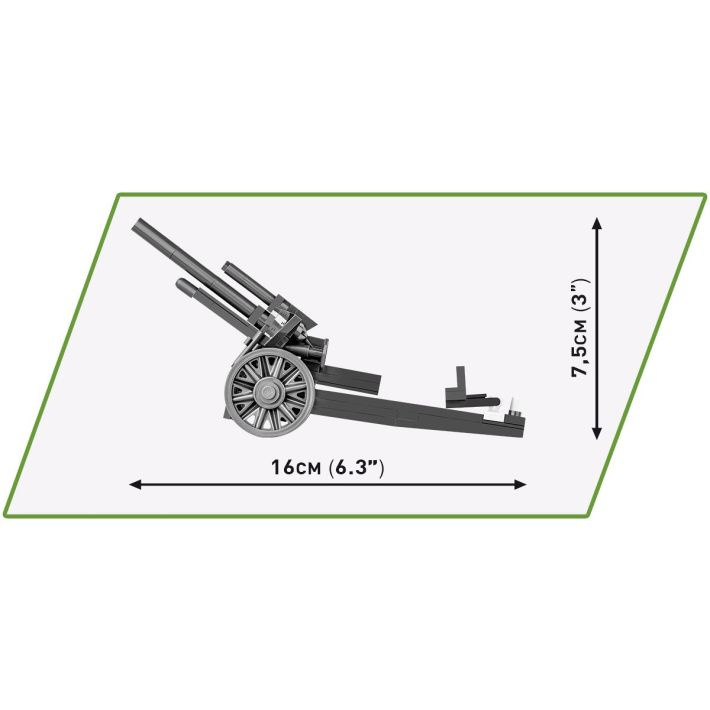 Postavte si model německé houfnice v měřítku 1:35. Model se skládá z 132 dílků a po sestavení měří 16 cm na délku a 7,5 cm na výšku. Model má pohyblivou hlaveň a nastavitelné podpěry. Sada obsahuje figurku německého dělostřelce, vyzbrojeného pistolí P08 Parabellum a je doplněna o štítek s názvem modelu.