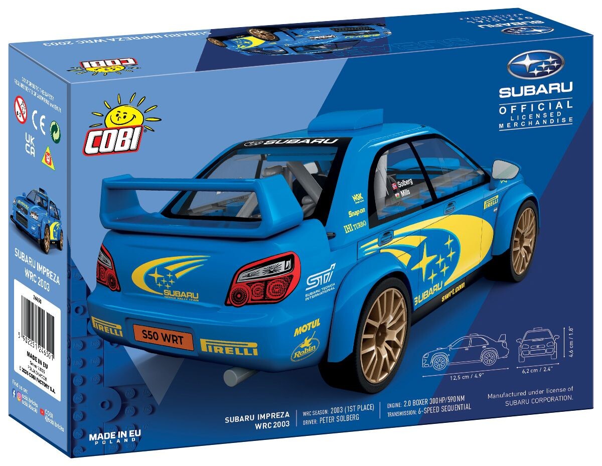 Subaru Impreza WRC 2003 bylo evolucí předchozích verzí z let 2001–2002. Vyznačovalo se vylepšenou aerodynamikou díky novému přednímu designu, upraveným podvozkem a lepší stabilitou na tratích. Pod kapotou pracoval legendární přeplňovaný motor typu boxer, jehož výkon byl přenášen na všechna čtyři kola pomocí pohonu AWD. Právě s tímto vozem získal norský jezdec Petter Solberg titul mistra světa v roce 2003. Dnes patří originální vozy WRC mezi sběratelské rarity, ale díky této stavebnici si můžete tuto legendu postavit a vystavit u sebe doma.