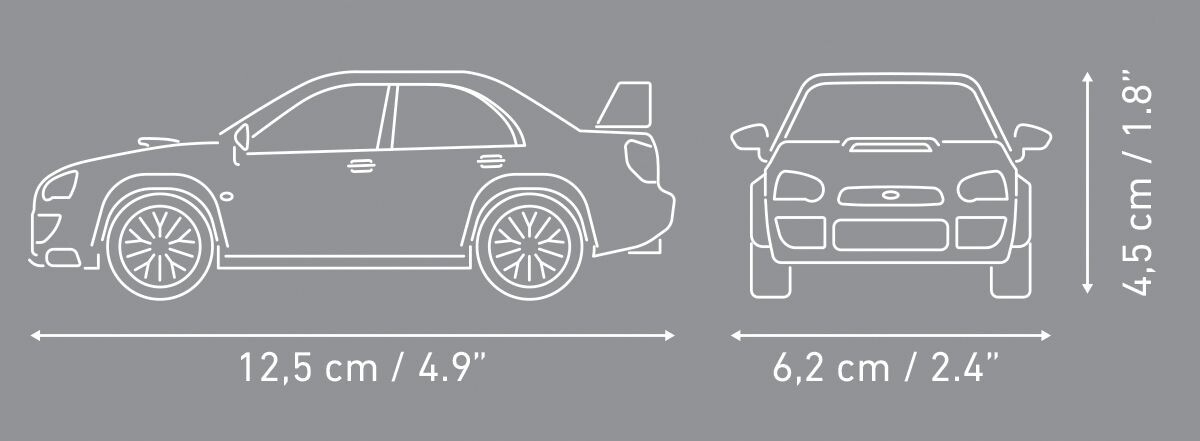 Postavte si Subaru Impreza WRC 2004 a připomeňte si nezapomenutelné finále rally v Japonsku! Tento model v měřítku 1 : 35 obsahuje 206 kostek a po sestavení dosahuje rozměrů 12,5 cm na délku, 6,2 cm na šířku a 4,5 cm na výšku. Věrně zachycuje legendární rallyový vůz s typickým „blobeye“ designem, sportovní siluetou a závodními detaily. Součástí balení jsou dvě figurky jezdců inspirované Petterem Solbergem a Philem Millsem, ceremoniální cílová brána, trofej, květiny, vlajky Norska a Japonska i drobné servisní doplňky. Model je vyroben s důrazem na kvalitu, obsahuje trvalé potisky i kvalitní samolepky a vznikl na oficiální licenci Subaru.