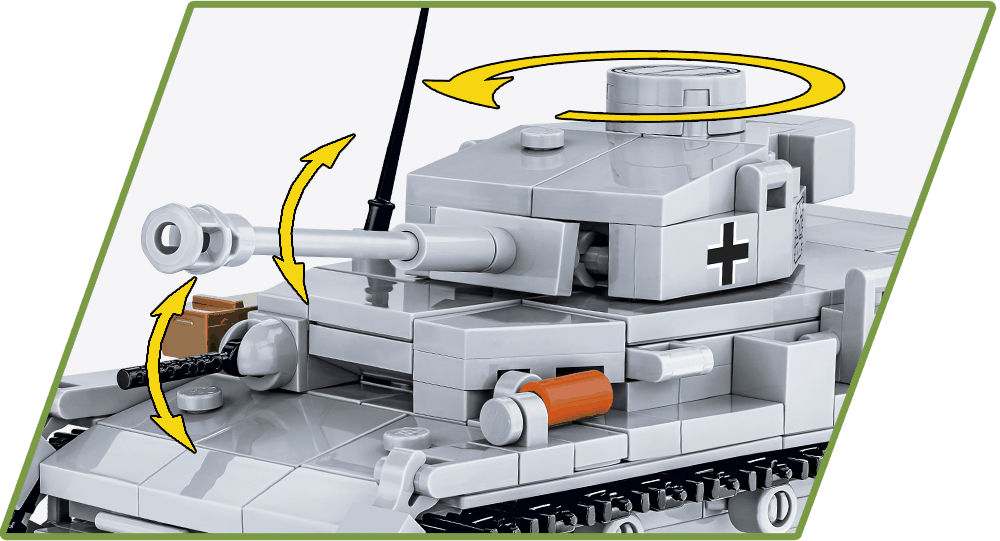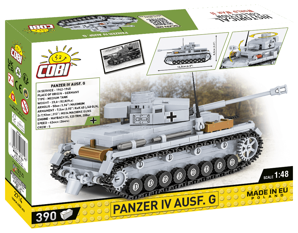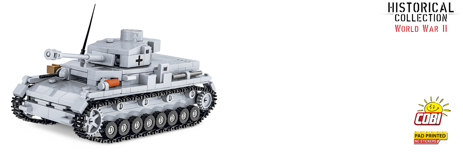 Postavte si model německého středního tanku Panzer IV v měřítku 1:48 a standardní šedé kamufláži. Model disponuje mnoha pohyblivými prvky, jako funkční pásový podvozek, otočná věž a náměr kanonu. Sestavený model se skládá z 390 dílků a měří 16,5 cm na délku, 7 cm na šířku a 8,5 cm na výšku.