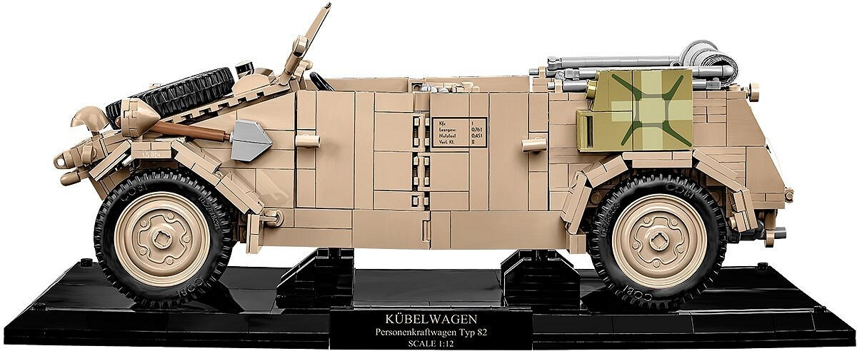 Sestavte si model německého terénního vozu Kübelwagen TYP 82 v měřítku 1:12. Byl navržen na základě muzejního kusu umístěného v Deutsches Panzermuseum Munster (Německo). Model se skládá z 1530 prvků a po sestavení měří 30,5 cm na délku, 14 cm na šířku a 12 cm na výšku. Pozornost upoutá pečlivě zpracovaný exteriér a interiér a zcela nové prvky navržené přímo pro potřeby takto velké sestavy. Interiér vozu je detailně propracovaný ve všech směrech, včetně volantu, sedadel, knoflíků, spínačů a motorového prostoru obsahujícího maketu motoru! Exteriér také zvyšuje laťku, pokud jde o přesnost proporcí a detailů, které může poskytnout pouze sada této velikosti. To zahrnuje sklápěcí okno, otevírací dveře, přístup do kufru a motorového prostoru, prvky výbavy a natáčecí kola, která lze ovládat volantem.
