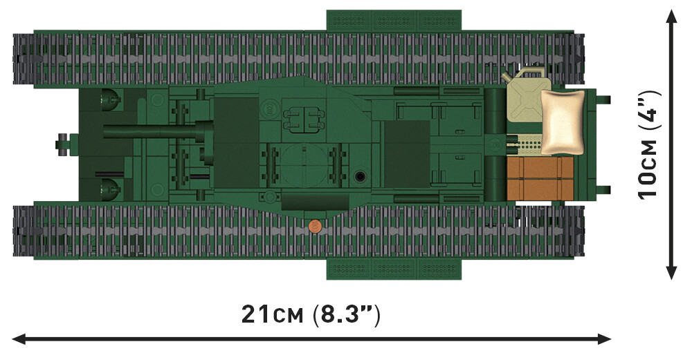 Postavte si detailní model britského těžkého pěchotního tanku Mark IV Churchill z období druhé světové války v měřítku 1:35. Stavebnice obsahuje 668 kvalitních kostek a po sestavení měří model 21 cm na délku, 10 cm na šířku a 11,5 cm na výšku. Model je vybaven funkčními pásy, plně otočnou věží, pohyblivým kanónem a otevíracím poklopem. Součástí balení jsou dvě figurky – britský tankista s baretou, samopalem Sten a dalekohledem a také polní maršál v typickém svetru s baretou a mapou invaze do Itálie. Realistický vzhled doplňují kvalitní potisky přímo na kostkách, včetně označení vozidla a detailů uniforem, a nechybí ani sběratelská tabulka s názvem modelu.