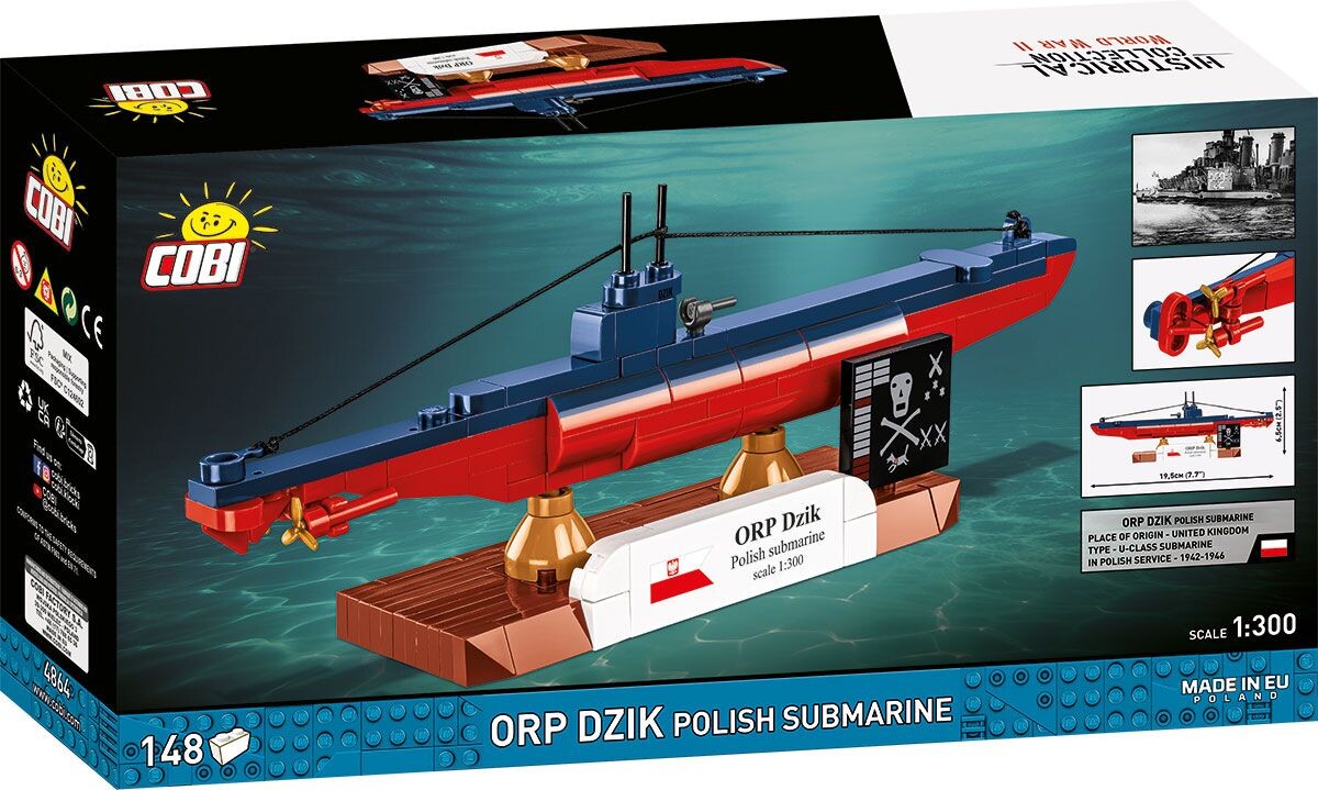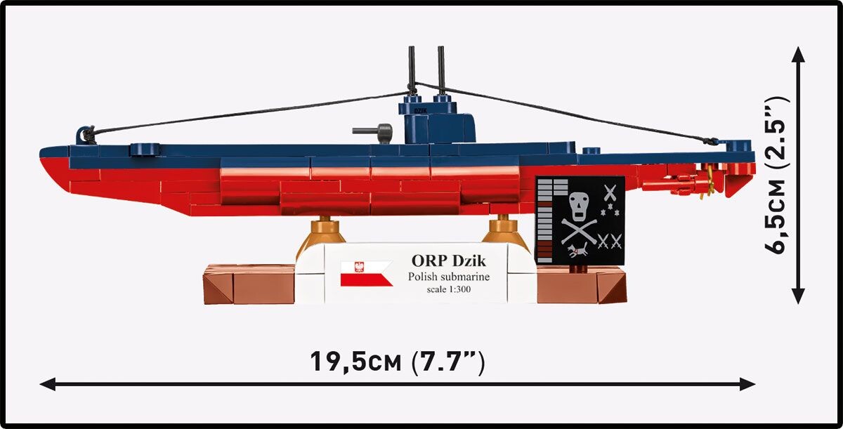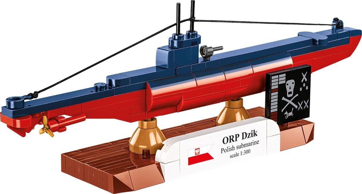 Postavte si ORP Dzik, legendární polskou ponorku z období druhé světové války, která si získala pověst jedné z nejúspěšnějších jednotek svého druhu. Tento model v měřítku 1 : 300 obsahuje 148 kostek a po sestavení dosahuje rozměrů 19,5 cm na délku, 6,5 cm na šířku a 4 cm na výšku. Model věrně zachycuje charakteristickou siluetu ponorky a je doplněn sběratelským podstavcem s tabulkou. Součástí je také tematická plaketa s pirátskou vlajkou Jolly Roger, která symbolizuje bojové úspěchy jednotky. Veškeré detaily jsou zpracovány pomocí trvalých potisků bez použití samolepek. Stavebnice vznikla ve spolupráci s Muzeem námořnictva v Gdyni, což zaručuje vysokou historickou přesnost.