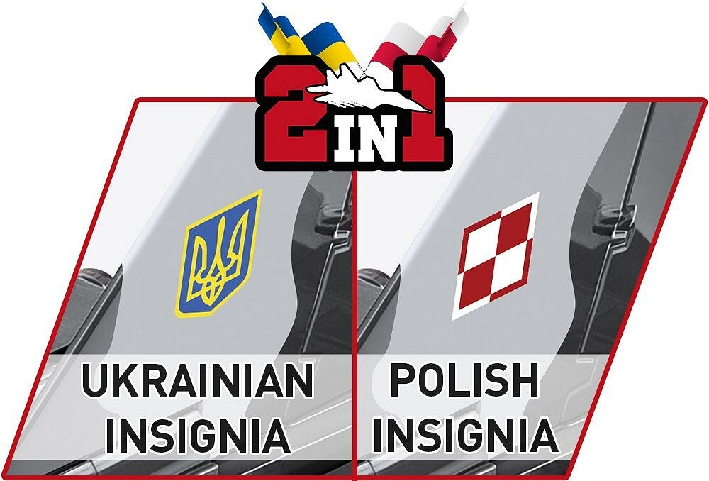 Sestavte si model letounu MiG-29 v měřítku 1:48. Stavebnice 2 v 1 obsahuje dvě sady označení pro letectva Polska a Ukrajiny. Letoun z kolekce Armed Forces se skládá z 550 dílků a po sestavení měří 35,5 cm délku, 11 cm na výšku a má rozpětí křídel 23 cm. Má pohyblivé prvky, jako jsou otevírací kabina nebo nastavitelné ocasní plochy. Podvozek letadla lze snadno oddělit a model umístit v letové poloze na stojánku s označením typu.
