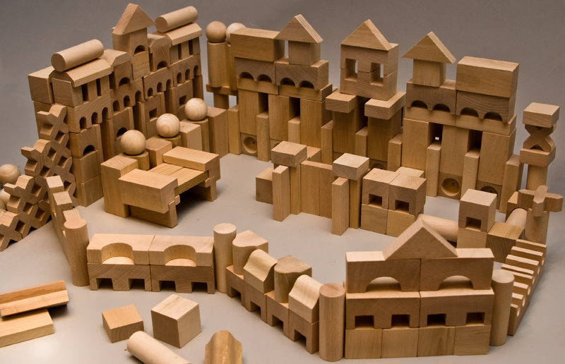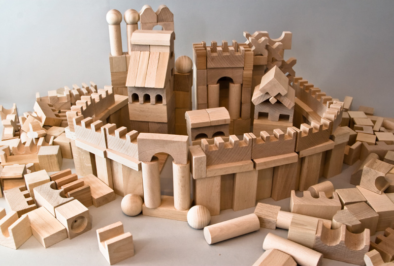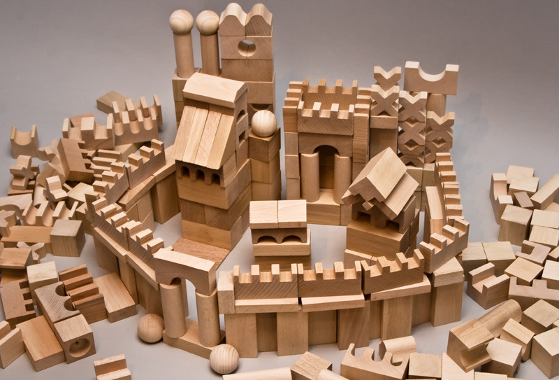 EkoToys Dřevěné kostky přírodní 220 ks XL