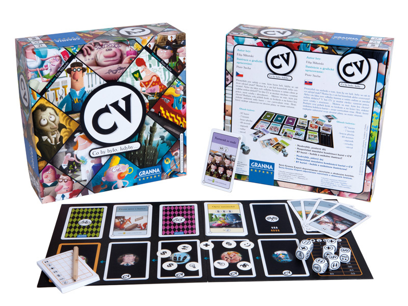 Co by bylo, kdyby… Přemýšleli jste někdy o tom, kým byste byli, kdyby se váš život odvíjel jinak? Možná by z vás byl kouzelník nebo cestovatel. Nebo vás láká svět velkého byznysu a vaším cílem je vydělat milion dolarů? Ve hře CV ze série GRANNA EXPERT je možné všechno: vysněná práce, nové vztahy i dovednosti… Můžete se stát, kým jen chcete! Budujte svůj příběh krok za krokem a na konci hry získáte unikátní sadu karet – své curriculum vitae. Hráč, který nejlépe uskuteční své životní plány, se stane vítězem. Tato hra s kostkami a osobitě ilustrovanými kartami, která je určena pro 2 až 4 pokročilé hráče starší 12 let, vám umožní stát se libovolnou postavou a prožít život úplně jinak. Nespočet možných kombinací zaručuje spoustu napínavých partií.