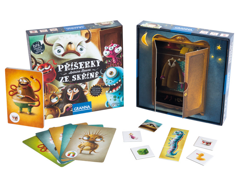 Večer vypadá svět úplně jinak. Na zdech se objevují tajemné stíny, pod postelí číhají strašidla a příšerky… Nemůžete usnout? Bojíte se příšerek? Začněte hrát a zažeňte je zpět do jejich skříně! Hra vhodná před spaním! Vyzkoušejte si, jak dobrou máte paměť! Zvolte si variantu hry. Máte raději spolupráci, nebo soupeření? Zapojte do hry celou rodinu! Příšerky ze skříně jsou kooperativní hra. To znamená, že hráči namísto toho, aby spolu soupeřili, musí spojit své síly, aby dokázali příšerky porazit. Všichni hráči pak buď společně vyhrají, nebo prohrají. Hra je určena pro 1 až 6 hráčů od 3 do 8 let a získala nominaci na HRU ROKU 2014 v kategorii dětských her. Pravidla nabízejí tři herní varianty. Nejobtížnější variantu hry nazvanou „Příšerky ve skupině“ najdete jako bonus v záložce Soubory ke stažení!