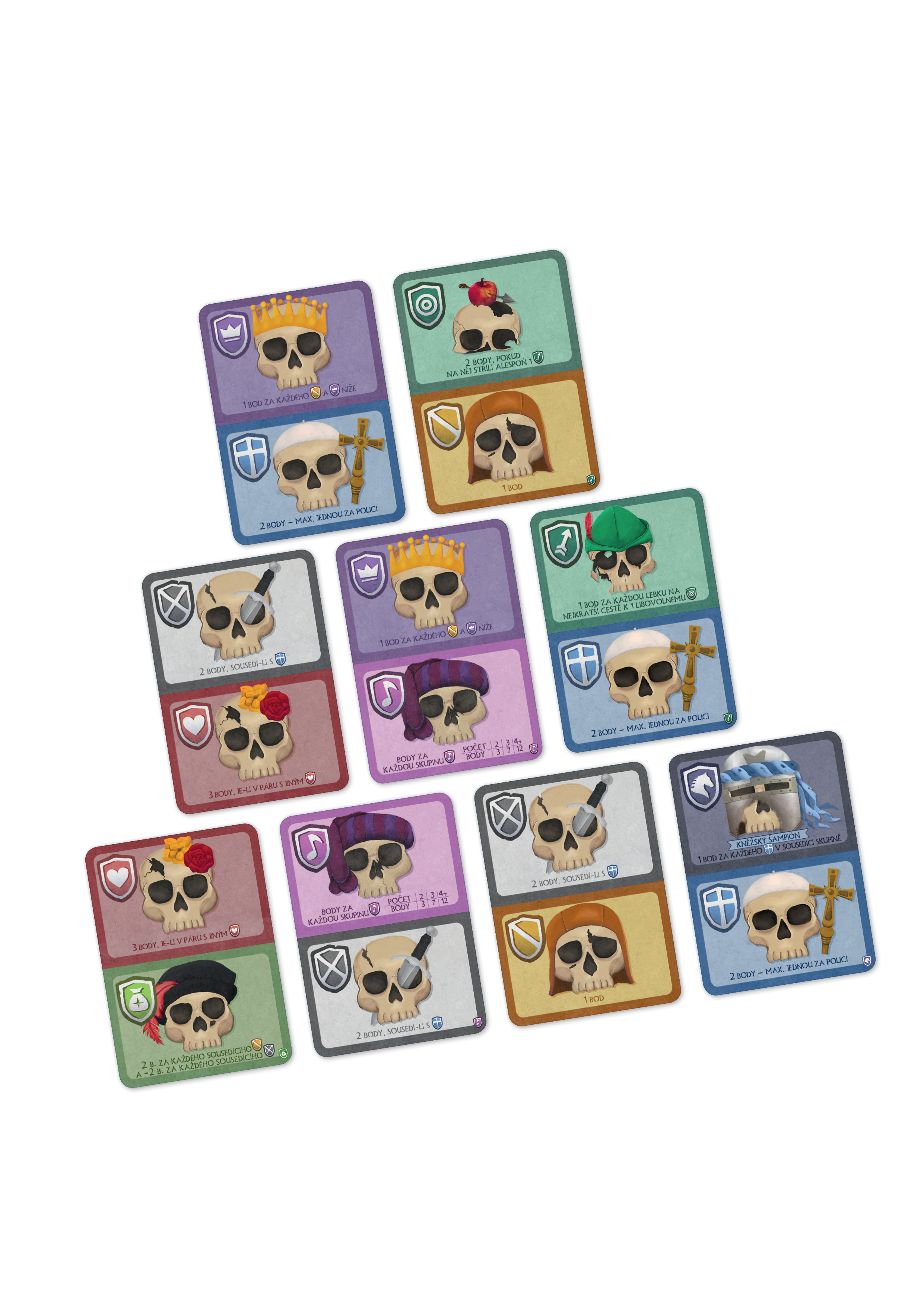 - uspořádejte lebky co nejvýhodněji do pyramidy dle toho, s kým si nebožtíci přejí a nepřejí sousedit