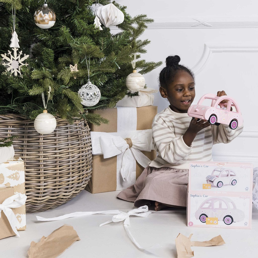 Tú tú! Stylová projížďka v růžovém retro autu? Kdo by odolal. Dřevěné autíčko má otevíratelný zavazadlový prostor, vložte do něj vkusný kufřík a můžete vyrazit. Malováno v pastelových odstínech růžové, do tohoto auta se vejdou až 4 miniaturní pasažéři. Hračka děti inspiruje k představivé hře, také pomůže s rozvojem jemné motoriky. Designováno v tradičním stylu z odolného a udržitelného dřeva, tato hračka vám vydrží opravdu dlouho. Velikostně vhodné pro postavičky Le Toy Van, nejsou součástí balení.