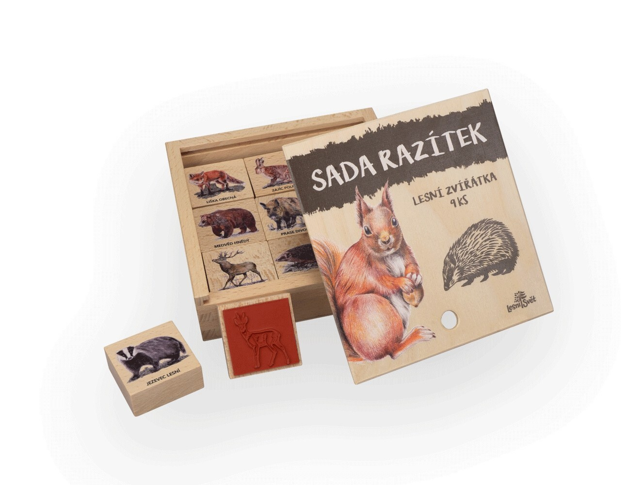 Každé razítko je pečlivě vyrobeno českými řemeslníky a zdobeno autorskými ilustracemi našich talentovaných českých ilustrátorů. Sada razítek je balena v elegantní dřevěné krabičce s vysouvacím víkem, což ji činí ideálním dárkem pro každého milovníka lesních zvířat.