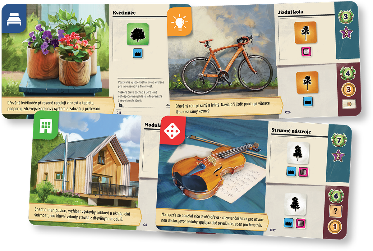 Desková hra Letokruhy vás zavede do světa moderního lesnictví, kde se stanete hospodáři v evropských lesích. Vaším cílem nebude pouze těžit dřevo, ale především udržitelně hospodařit tak, aby les prosperoval i pro budoucí generace. Hra unikátním způsobem propojuje zábavu s odbornými poznatky – pravidla jsou obohacena o texty expertů z Fakulty lesnické a dřevařské ČZU v Praze, které vám přiblíží ekologický význam stromů i moderní zpracování dřeva.