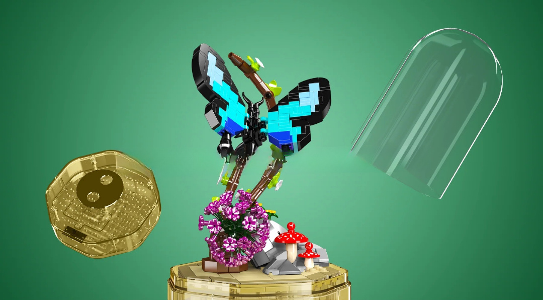 Zachyťte krásu přírody v kostkách! Stavebnice Motýl z řady Svět hmyzu od Mould King přináší okouzlující model barevného motýla sedícího na větvičce, doplněného červenou muchomůrkou. To vše je umístěno na elegantním otočném podstavci s LED osvětlením a hudebním doprovodem, který promění model v dechberoucí dekoraci.