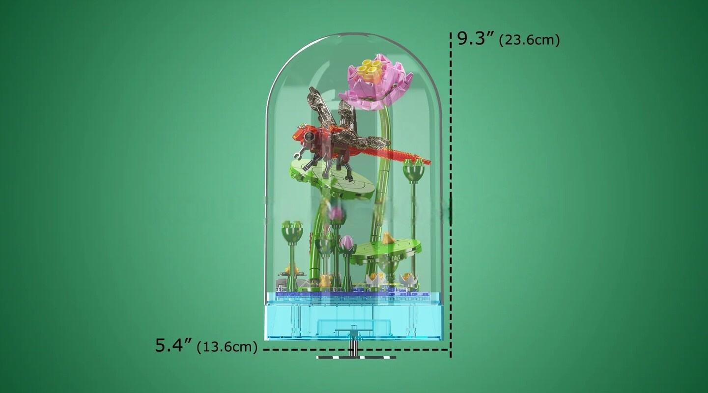 Vstupte do rozkvetlé zahrady plné detailů a klidu. Stavebnice Svět hmyzu: Vážka z kreativní série od Mould King vás zavede k leknínovému jezírku, kde na zelených listech a růžových lotosových květech spočívá elegantní červená vážka. Celý model je umístěn na otočném podstavci s LED podsvícením a hudbou, který přidává kouzlo nejen během dne, ale i večer jako originální dekorace.