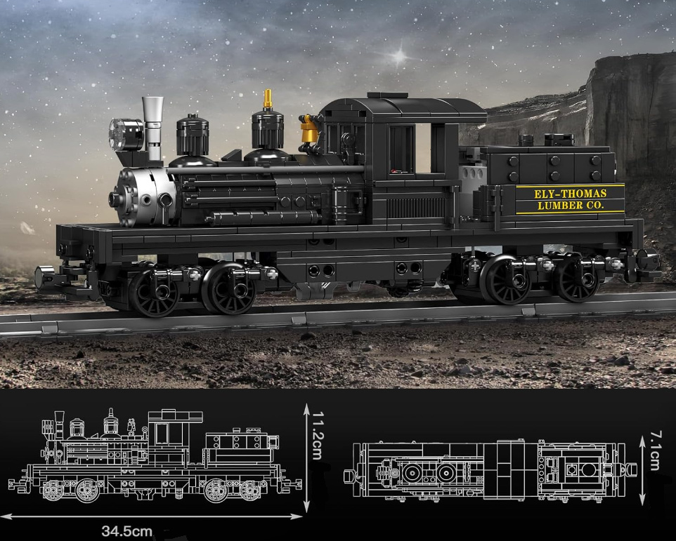 Lokomotiva se skládá z 880 dílků a její sestavení je snadné díky přehlednému návodu. Model je vybaven MK4 bateriovým boxem, L motorem a funkčním LED světlometem, který dodává jízdě ten pravý historický nádech. Odnímatelná střecha kabiny umožňuje nahlédnout do vnitřku – najdete zde detailně ztvárněné páky, měřidla i sedadlo strojvedoucího.