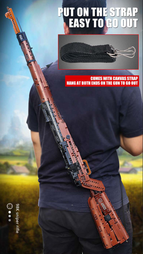Německou útočnou pušku Mauser 98K je možné sestavit z 1025 dílků. Po sestavení měří puška 107 cm. Díky přehlednému návodu bude proces sestavení snadný a zábavný. Takový model může být krásnou dekorací vašeho domova nebo inspirujícím dárkem pro blízkého, který ocení vaši práci a dovednost.