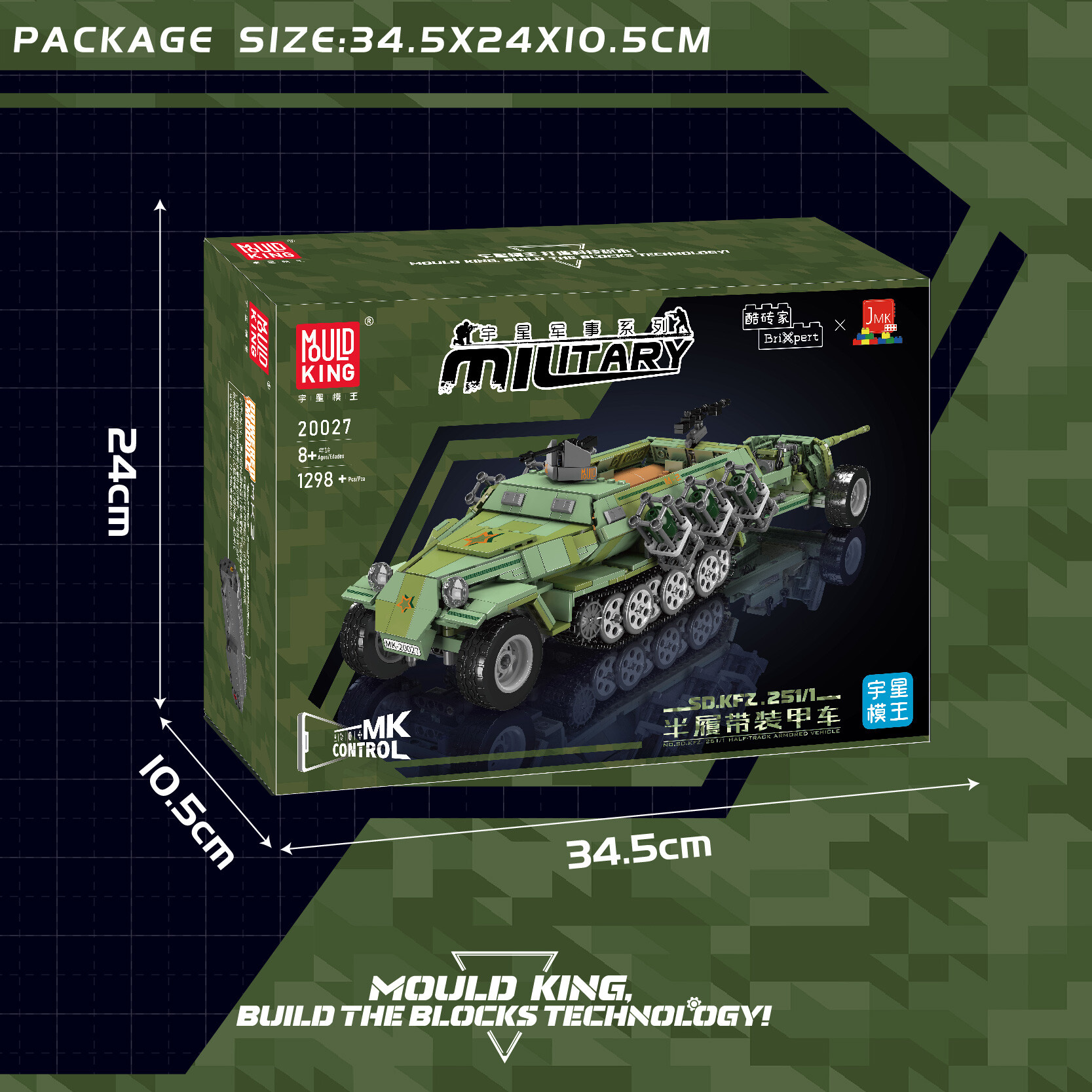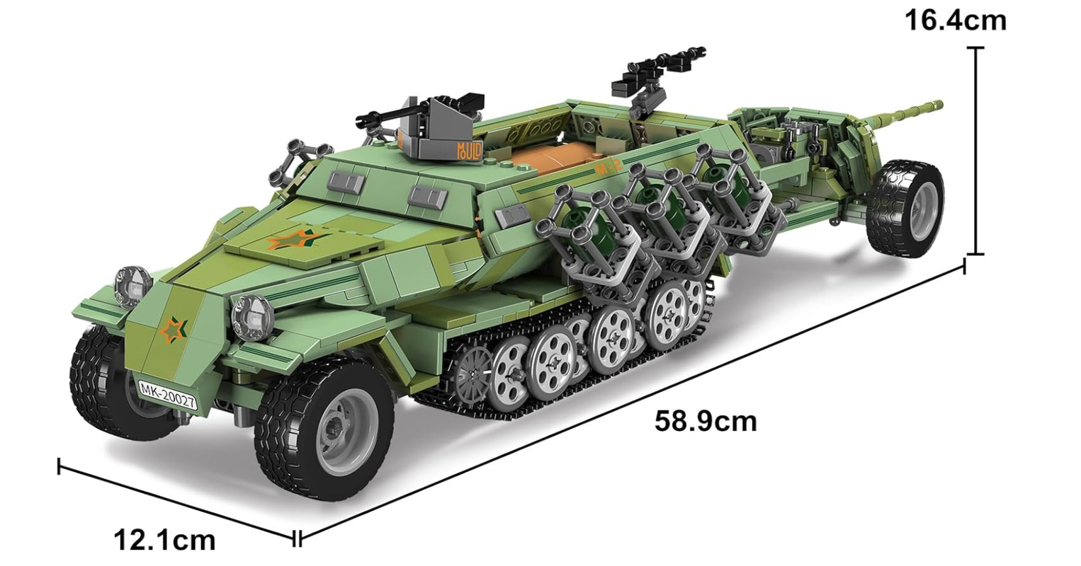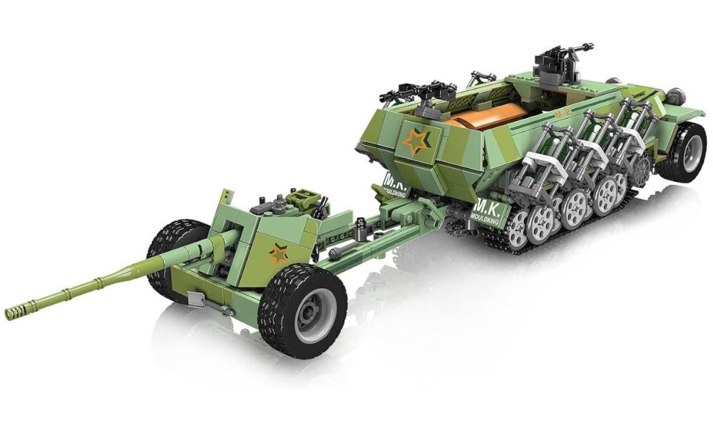 Stavebnice kolopásového transportéru od Mould King představuje skvělou volbu pro všechny, kdo mají zájem o vojenskou techniku a modelářství. Tento model je možné sestavit z 1298 dílků a je vybaven realistickými detaily. Jeden z těchto detailů u tohoto transportéru je například připojené protitankové dělo, jež dodává modelu na autentičnosti a interaktivitě.