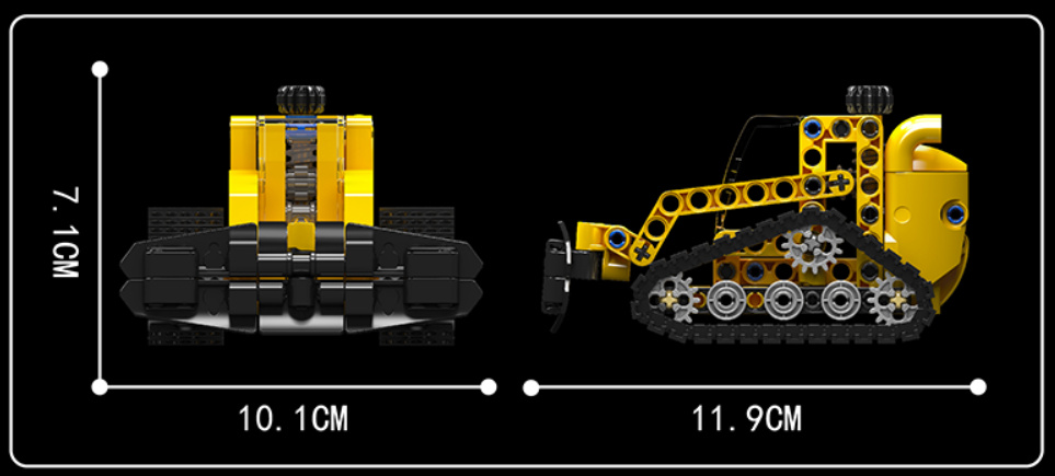 Stavebnice mini buldozeru se zvedací radlicí ve žluté barvě se skládá ze 188 dílků a představuje skvělý doplněk pro každého nadšence do stavební techniky, ať už je to malý budoucí stavitel nebo dospělý sběratel stavební techniky. Tento malý model o rozměrech 11,9 cm x 10,1 cm je nejen kompaktní ale i praktický.