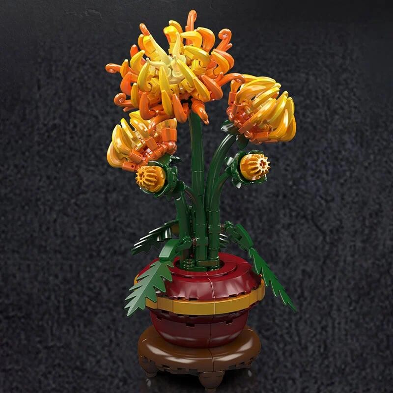 Elegantní stavebnice kvetoucí chryzantémy v dekorativním květináči z kvalitních stavebnicových dílků. Nejde jen o krásný květ, ale i stylový květináč, díky kterému působí celý model jako skutečná pokojová rostlina.