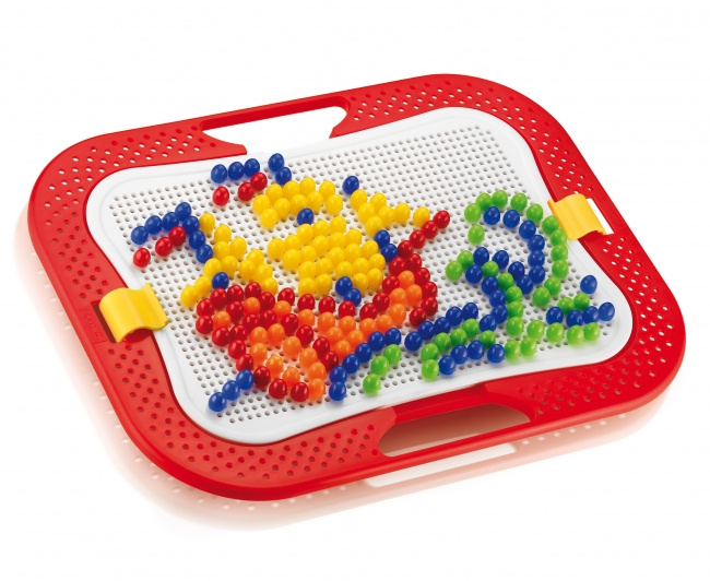 Mozaiky u dětí rozvíjejí jemnou motoriku, tvořivost a fantazii. Skládají se z kufříku, děrované hrací desky a barevných kolíčků s hlavičkami různých barev, průměrů a tvarů. Pomocí těchto kolíčků, které se zasazují do otvorů v hrací desce, tvoří dětí různé obrázky nebo vzory. Po skončení hry lze vše uložit do kufříku, jehož víko po zajištění pojistkou tvoří sama hrací deska. Vyrobeno z plastů špičkové kvality.