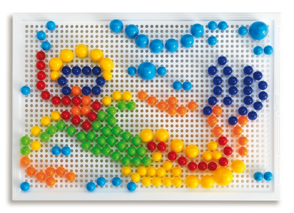 Mozaiky u děti rozvíjejí jemnou motoriku, tvořivost a fantazii. Skládají se z kufříku, děrované hrací desky a barevných kolíčků různých barev, průměrů a tvarů. Pomocí těchto kolíčků, které se zasazují do otvorů v hrací desce, tvoří děti různé obrázky nebo vzory. Po skončení hry lze vše uložit do kufříku, jehož víko po zajištění pojistkou tvoří sama hrací deska. Vyrobeno z plastů špičkové kvality.