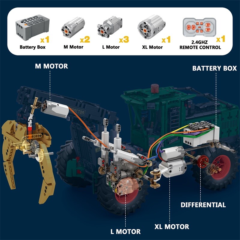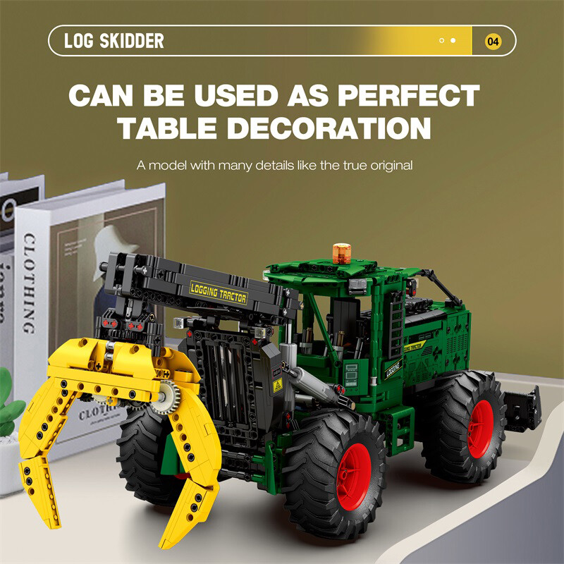Stavebnice obsahuje 1741 dílků, ze kterých sestavíte robustní lesnický traktor s pohyblivým ramenem a drapákem pro uchopení kmenů. Díky dálkovému ovládání a možnosti řízení přes mobilní aplikaci nabízí model dynamickou a technicky zajímavou hru.
