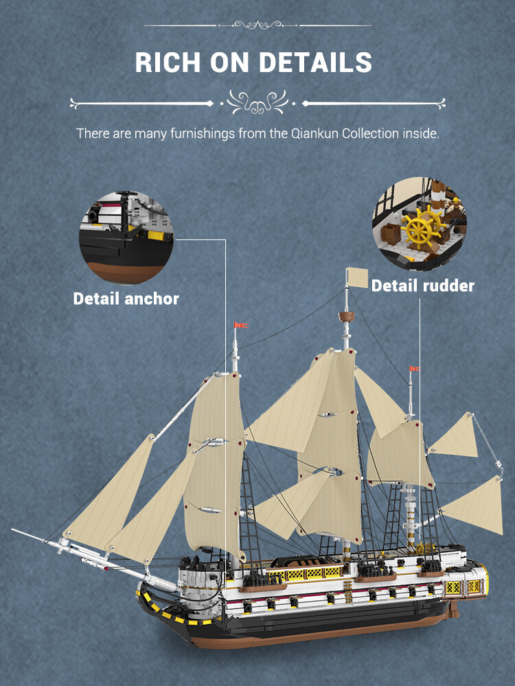 • Plachty s potiskem – potištěné plachty dodávají modelu realistický vzhled a autentický dojem historické plachetnice.