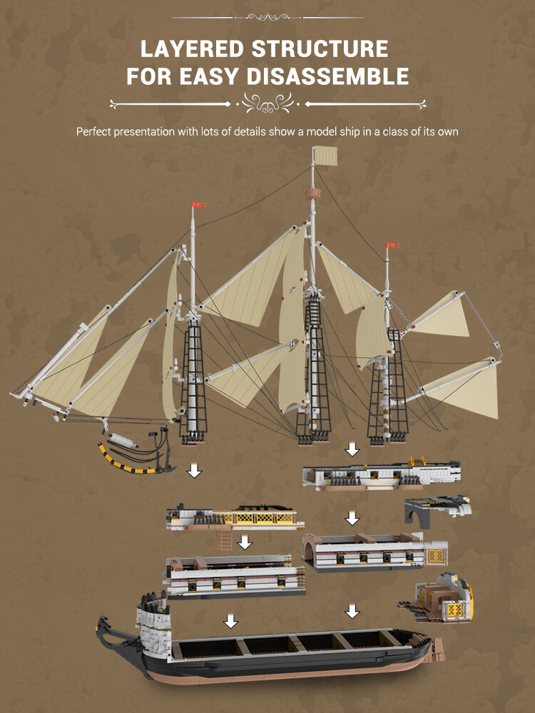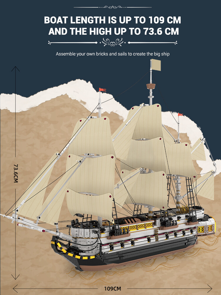 Objevte kouzlo námořní historie s impozantní stavebnicí legendární britské plachetnice HMS Endeavour – precizně navrženým modelem inspirovaným slavným britským průzkumným a válečným plavidlem slavného mořeplavce a objevitele kapitána Cooka.