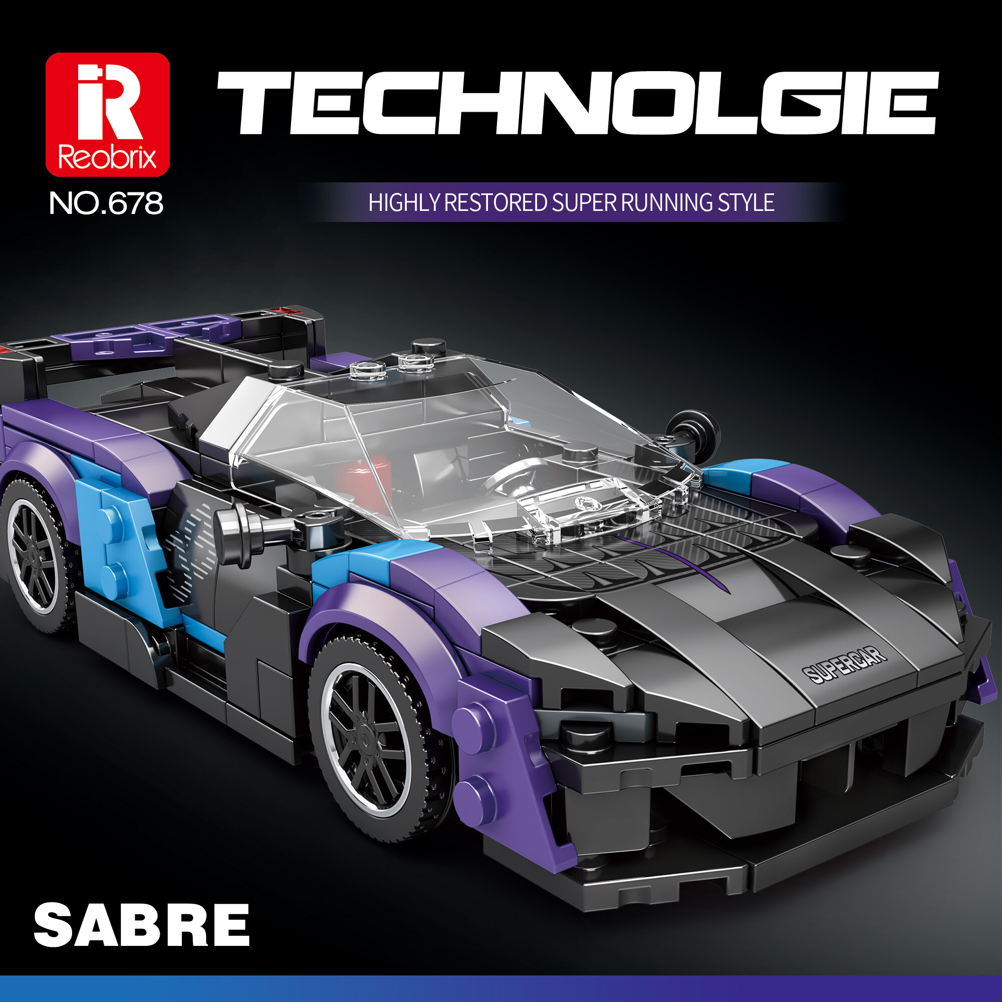 Model McLaren Sabre od značky Reobrix přináší jedinečný design inspirovaný skutečným vozem s výkonem přes 800 koní. Díky ladným aerodynamickým křivkám, ikonickým světlům a elegantní kombinaci barev působí tento model dynamicky i v klidu.
