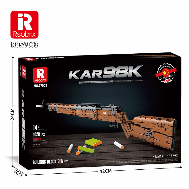 Reobrix 77003 Puška Mauser KAR 98K spojuje historii, technickou preciznost a radost z detailní stavby. Výrazný model, který obohatí každou sbírku o kus vojenské historie.