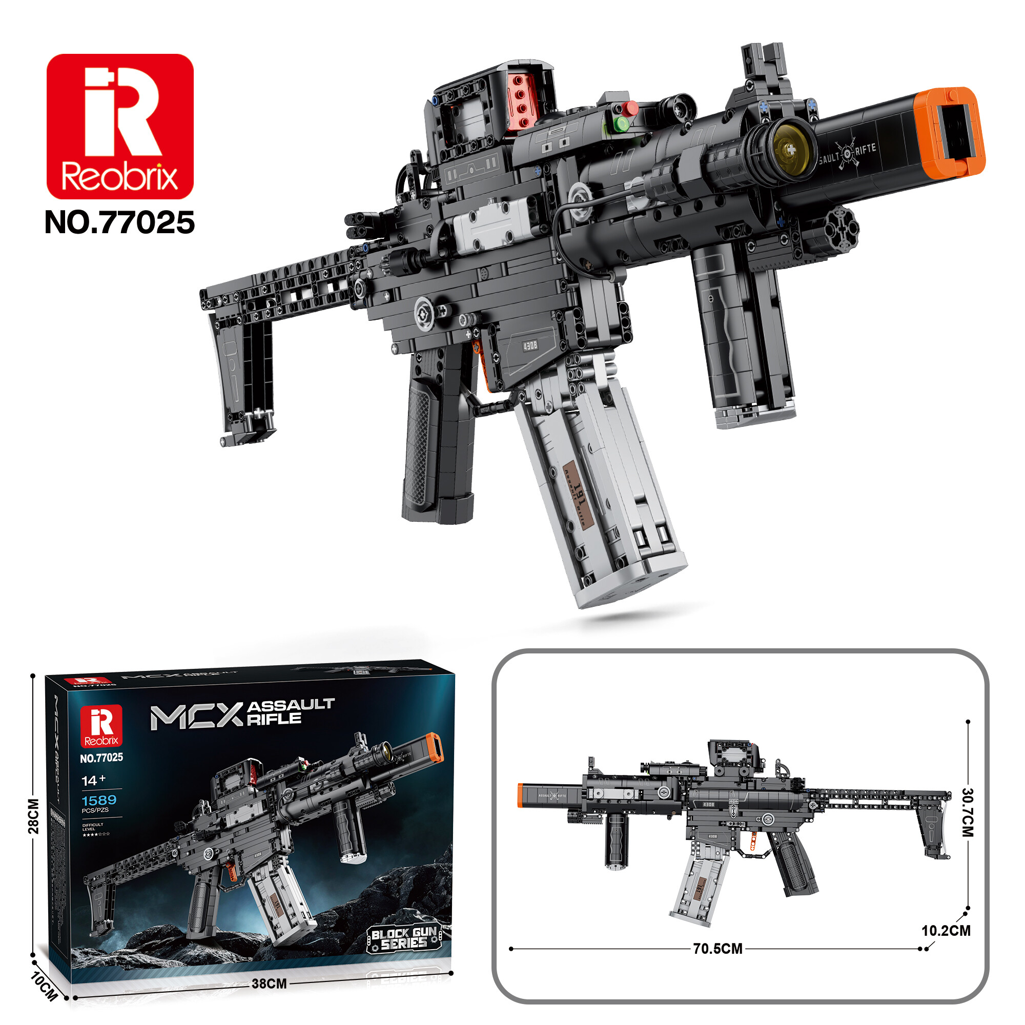 Vytvořte si výrazný sběratelský model moderní vojenské techniky! Reobrix 77025 Útočná puška MCX je detailní technická stavebnice inspirovaná současnou útočnou puškou MCX (bez licence), navržená pro dospělé fanoušky militaristických modelů a precizních konstrukcí. Díky 1589 dílkům vznikne impozantní model v kolekčním měřítku, který zaujme realistickými proporcemi, propracovanými detaily a působivým „desktop-ready“ vzhledem.